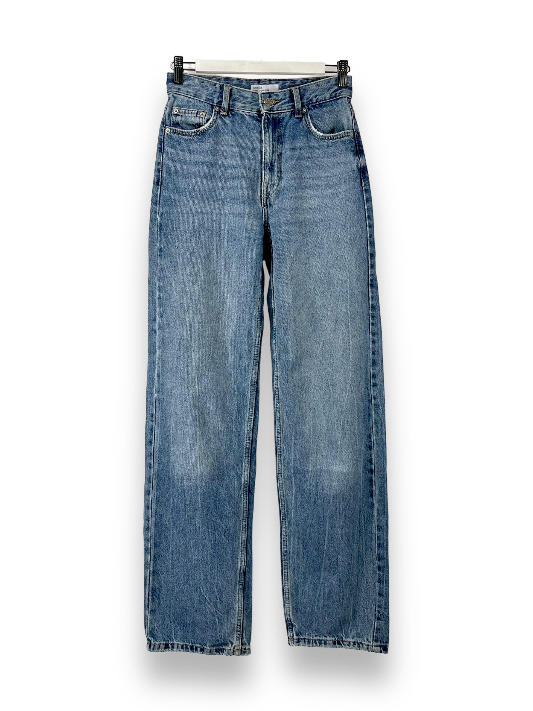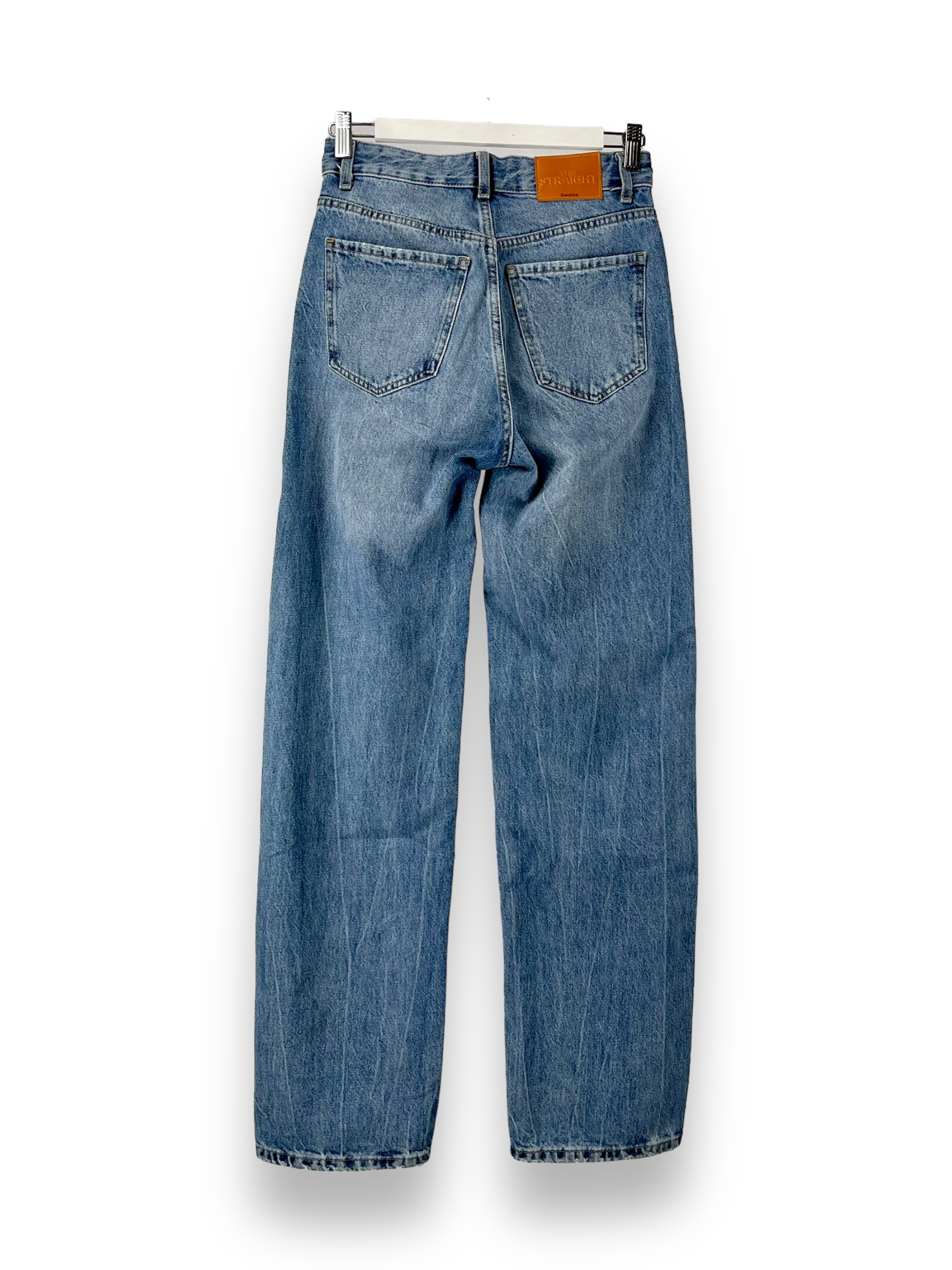 Die Boyfriend Jeans von Bershka haben einen weiten, geraden Schnitt und sind denim Blau. Die Hose lässt sich toll zu verschiedenen Farben und Schnitten kombinieren.
