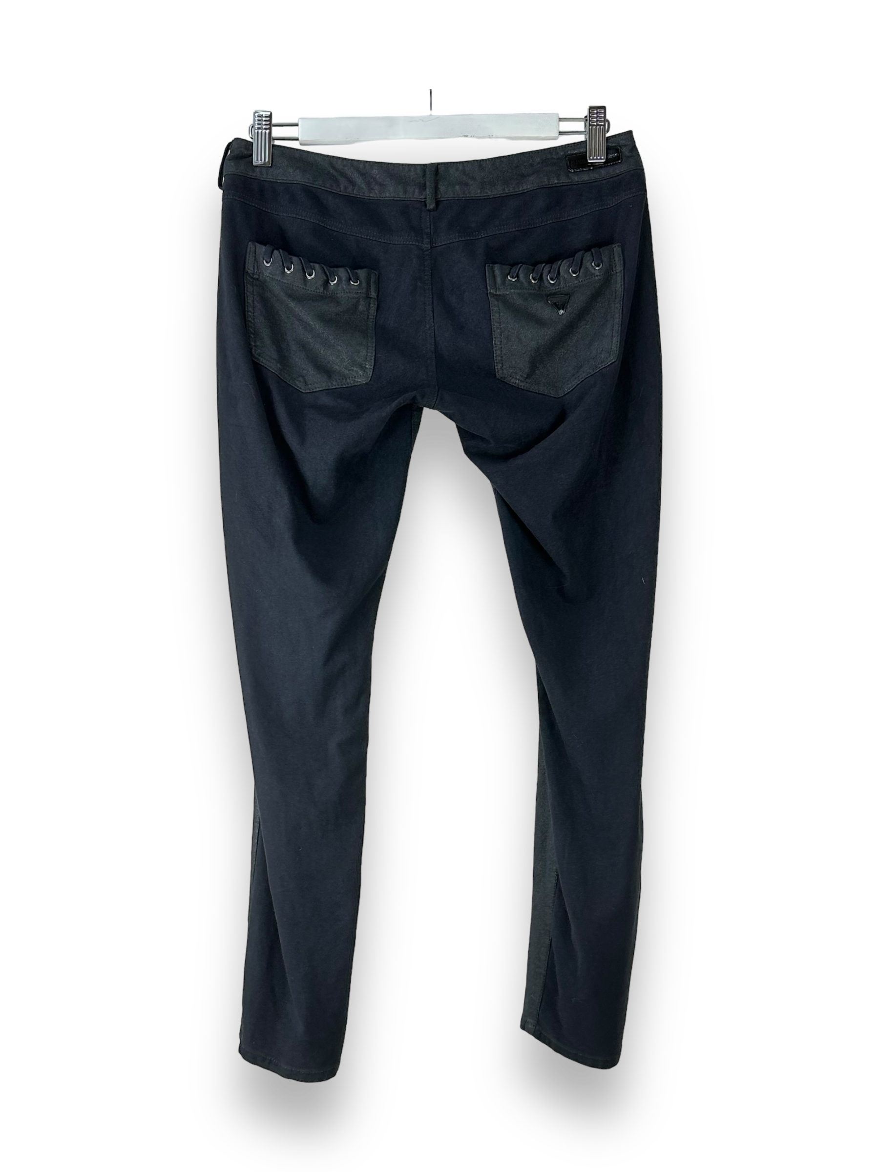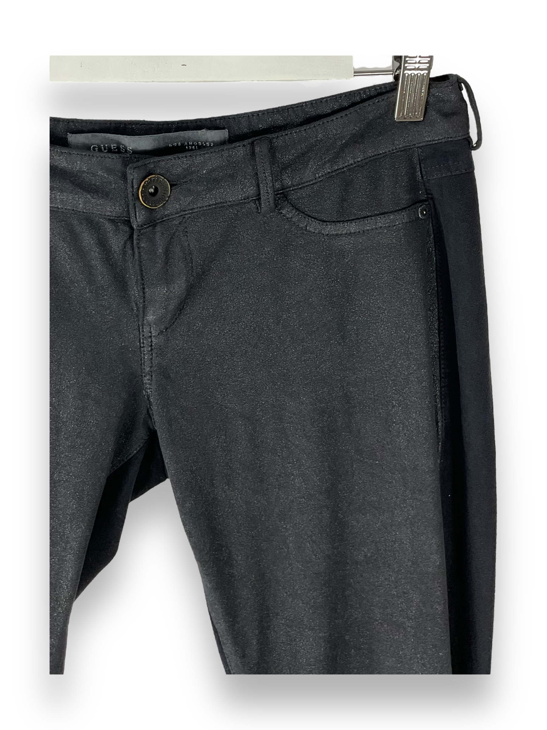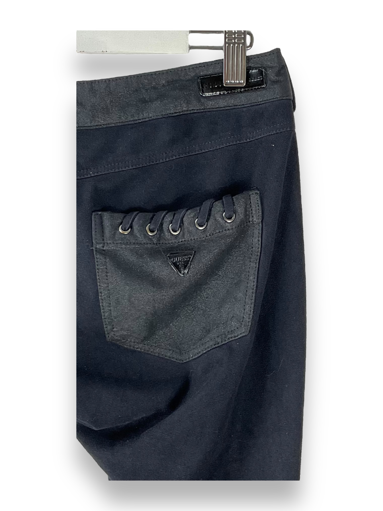 Diese Guess Lederhose in zeitlosem Schwarz ist ein absolutes Must-Have für jede stilbewusste Garderobe. Die Hose kombiniert geschickt den Charme von Kunstleder mit einer eleganten Velours-Optik, die sie zu einem vielseitigen Kleidungsstück für verschiedene Anlässe macht. Die schlanke Passform betont die Silhouette und verleiht eine modische Eleganz. Ein besonderes Highlight sind die Schnürdetails an den Hosentaschen auf der Rückseite, die der Hose einen trendigen Akzent verleihen. Die hochwertige Verarbeitung und das geschmeidige Kunstleder sorgen nicht nur für ein angenehmes Tragegefühl, sondern auch für eine lange Haltbarkeit. Diese Guess Lederhose ist die perfekte Wahl, um den Stil auf das nächste Level zu heben. Mit ihrem zeitlosen Design und der erstklassigen Qualität ist sie eine großartige Ergänzung für Ihre Garderobe und sieht gut aus, egal ob Sie sie zu formellen Anlässen oder bei einem Abend mit Freunden tragen.