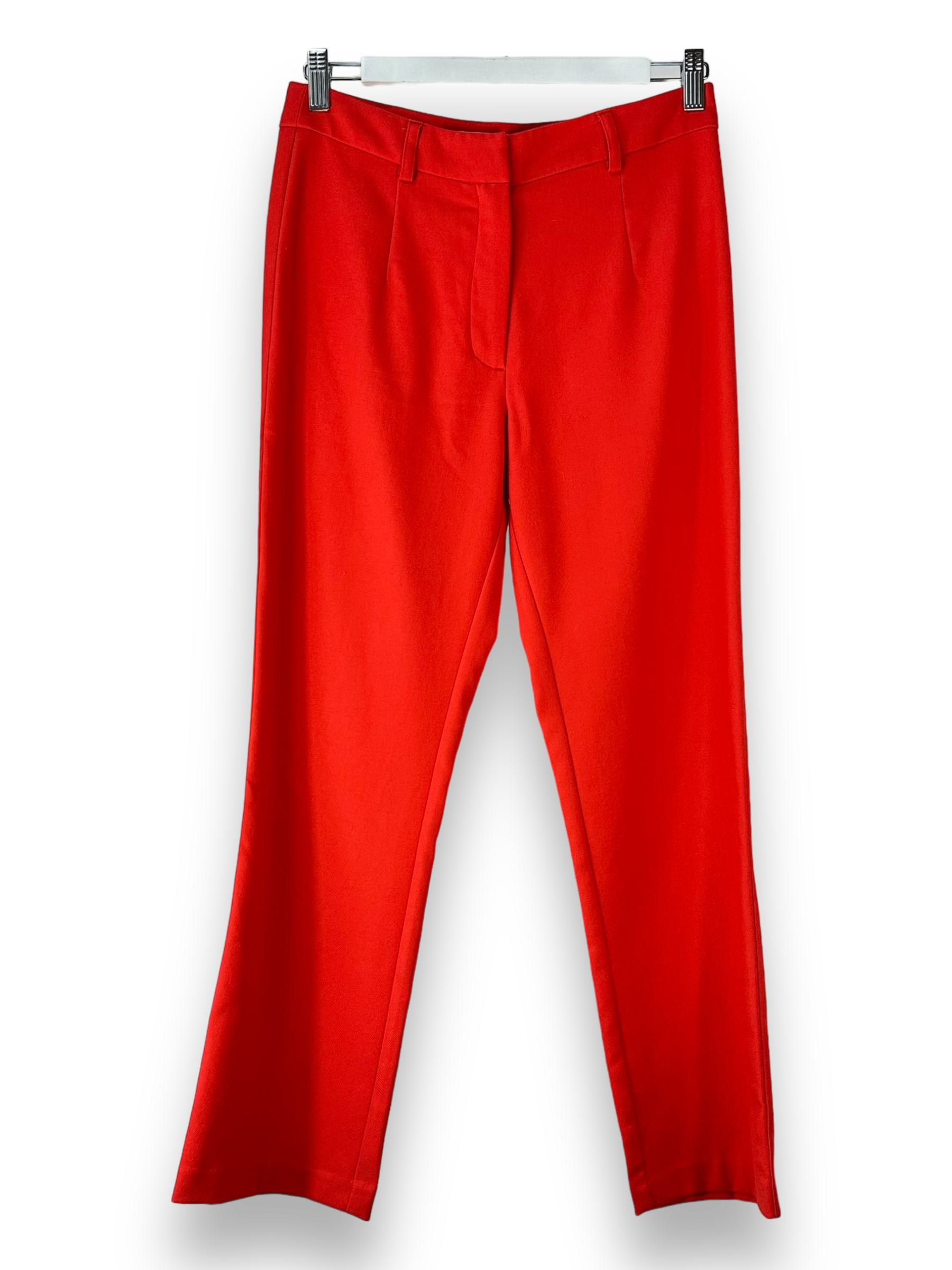 Diese rote Culotte-Stoffhose von EDITED ist ein stilvolles Kleidungsstück, das Eleganz und Komfort perfekt kombiniert. Die kräftige rote Farbe verleiht Ihrem Outfit eine auffällige Note und macht diese Hose zu einem echten Blickfang. Die Culotte-Passform mit weitem und geradem Bein sorgt für Beinfreiheit und Bequemlichkeit. Die Hose hat eine knöchellange Länge, was sie perfekt für verschiedene Anlässe macht, von Bürooutfits bis hin zu Freizeitlooks. Das unifarbene Design ermöglicht es Ihnen, sie vielseitig zu kombinieren. Diese Culotte-Stoffhose von EDITED befindet sich in einem sehr guten Zustand und ist die ideale Wahl für Frauen, die nach einer stilvollen und dennoch bequemen Hose suchen. Mit ihrem modernen Design und der hochwertigen Verarbeitung ist sie ein absolutes Must-Have für die Garderobe.