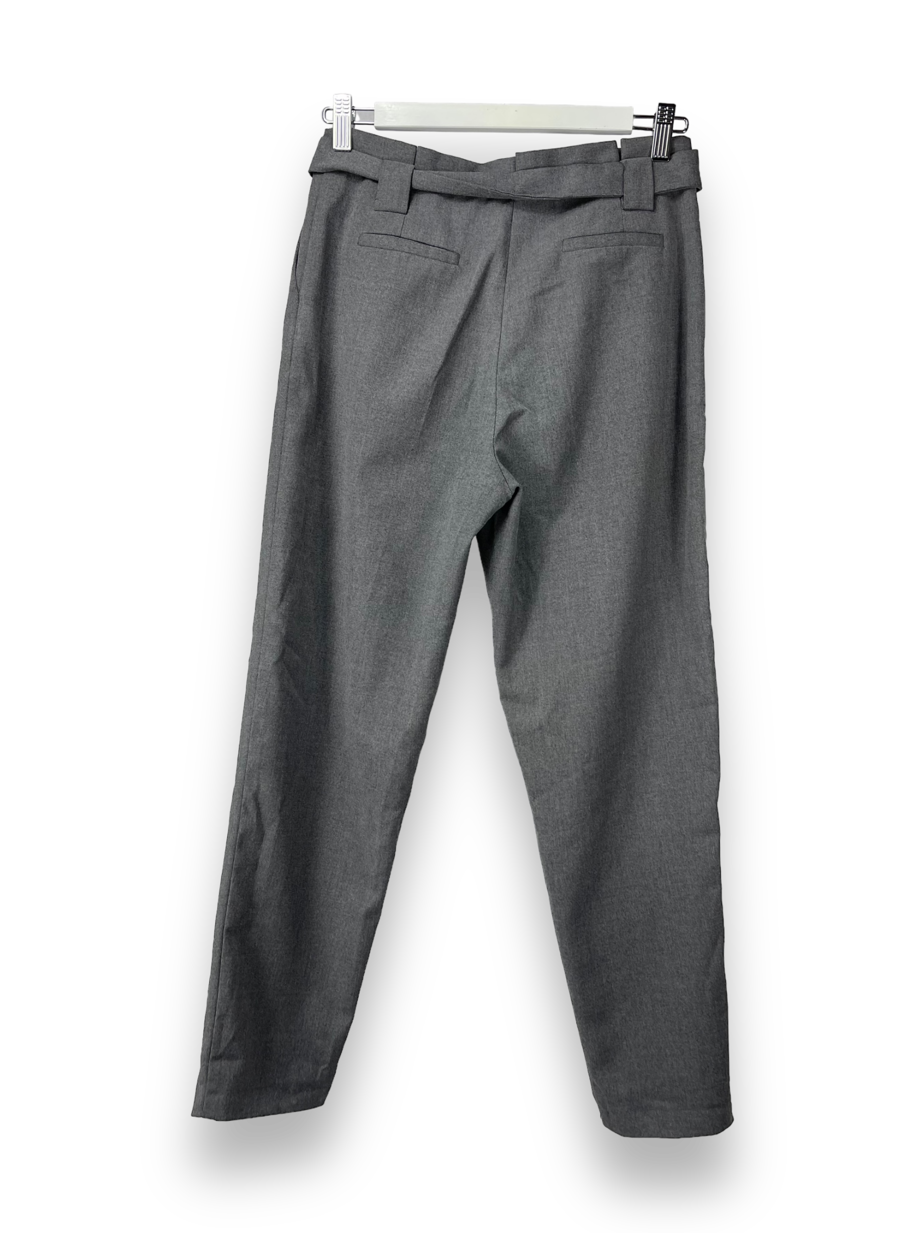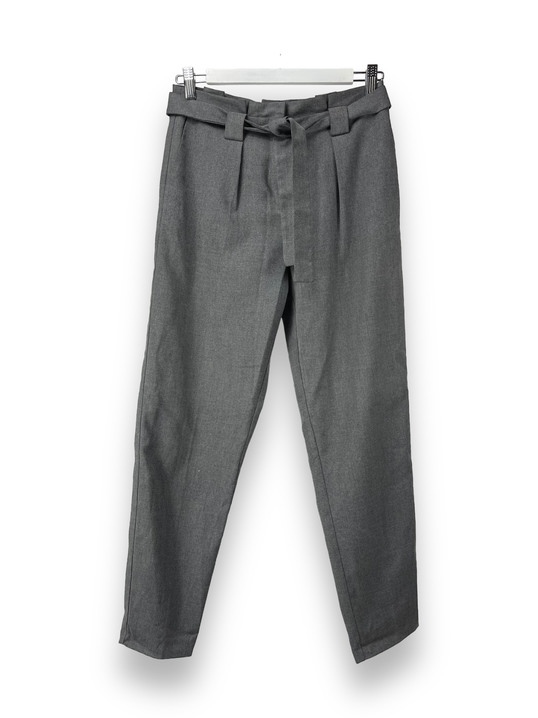 Diese Stoffhose hat einen geraden Schnitt und ist uni grau. Am Bund wurde die Hose leicht zusammen genäht und bringt zusätzlich einen Bändel zum zusammen ziehen für einen besseren Halt mit. Natürlich hat die Stoffhose auch Hosentaschen dabei.