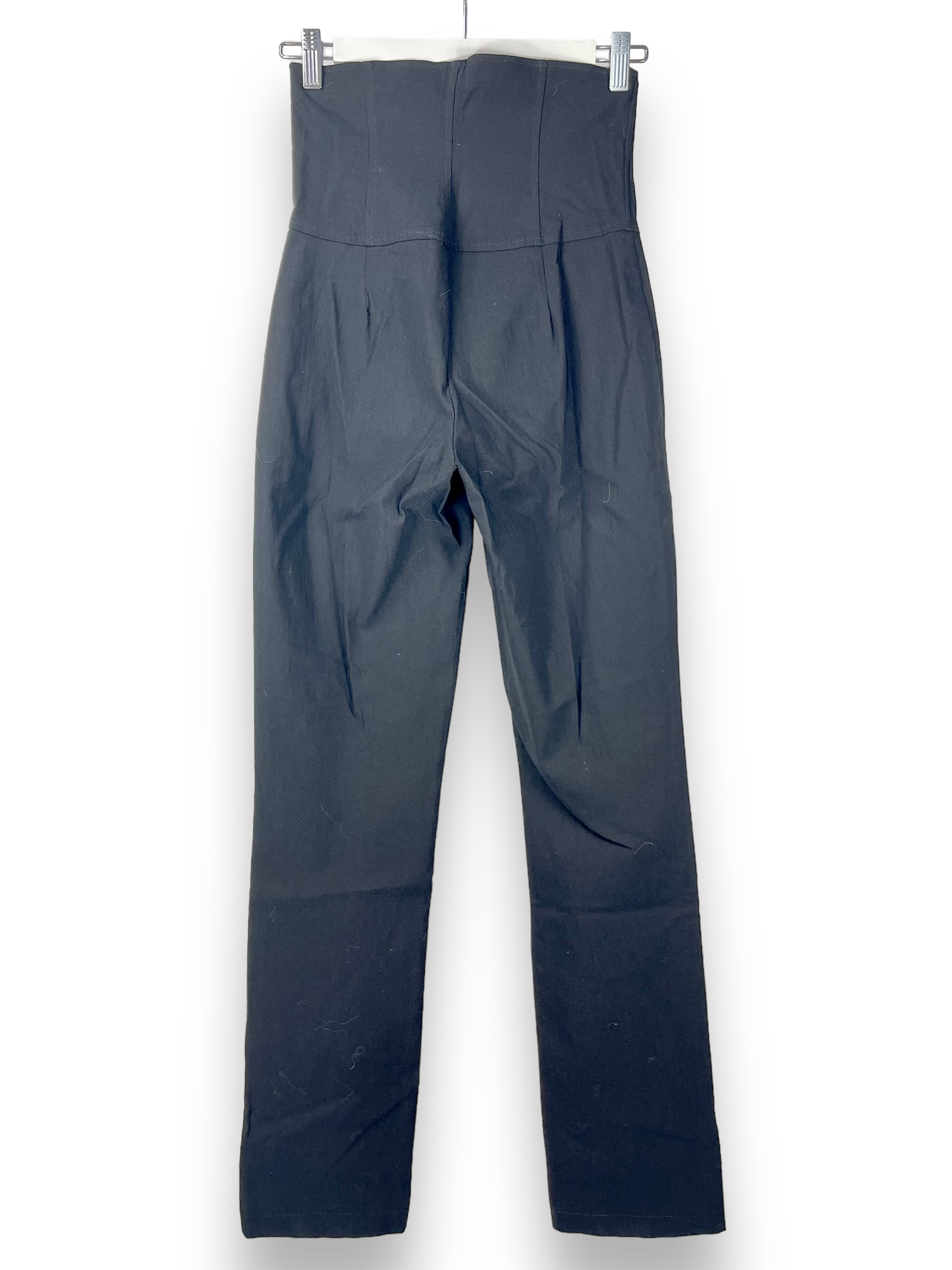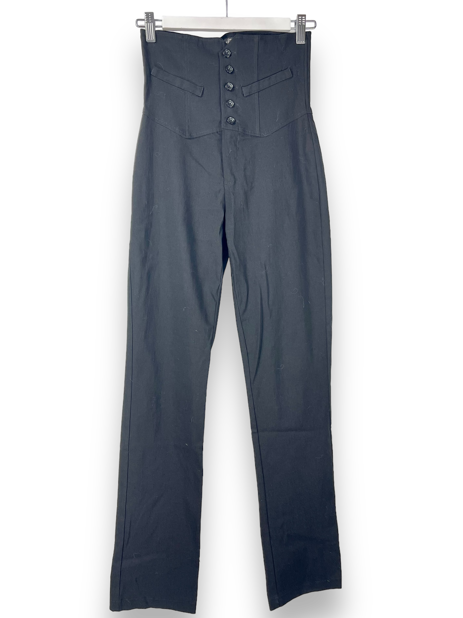 Die Stoffhose von Melrose hat einen sehr hohen Bund, welcher einen Verschluss von fünf Knöpfen hat. Das etwas speziellere an der Hose ist, dass diese keine Hosentaschen haben.