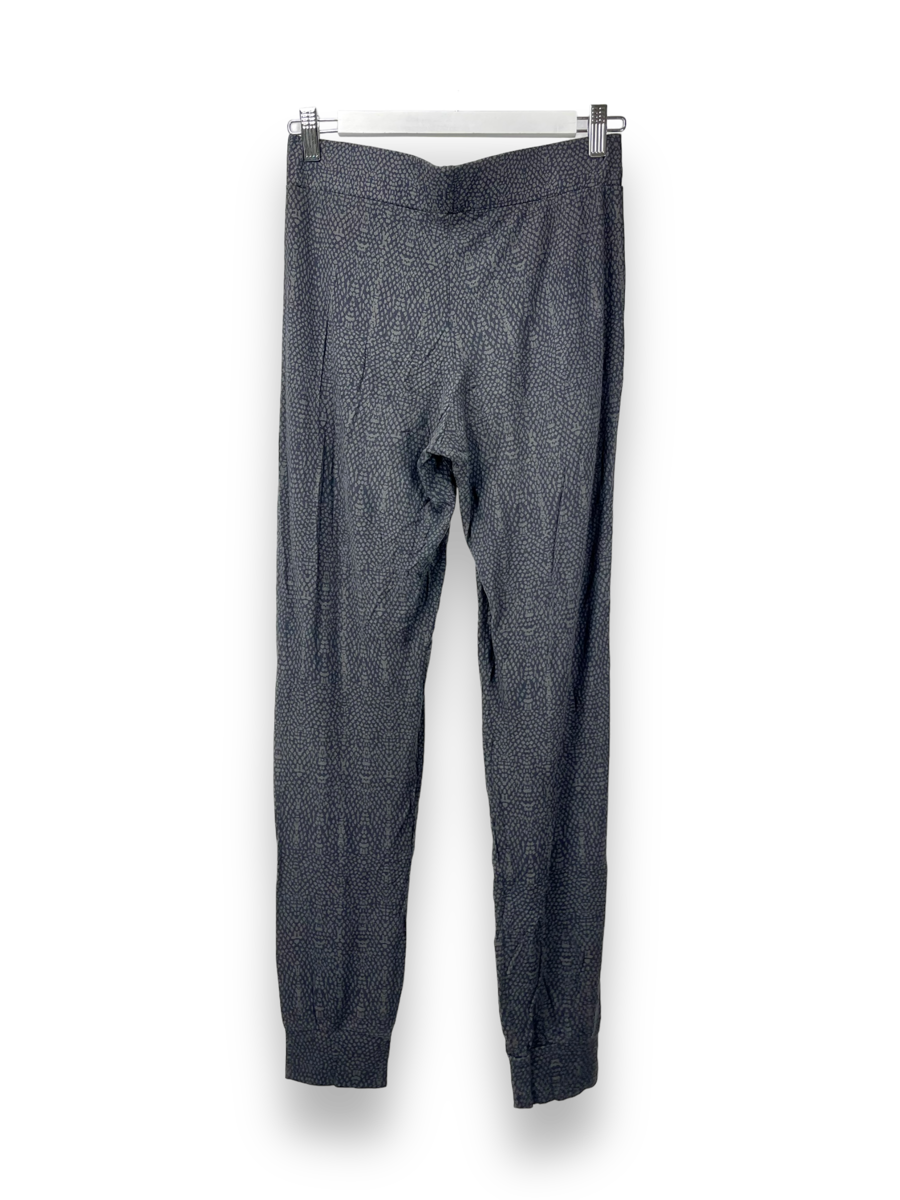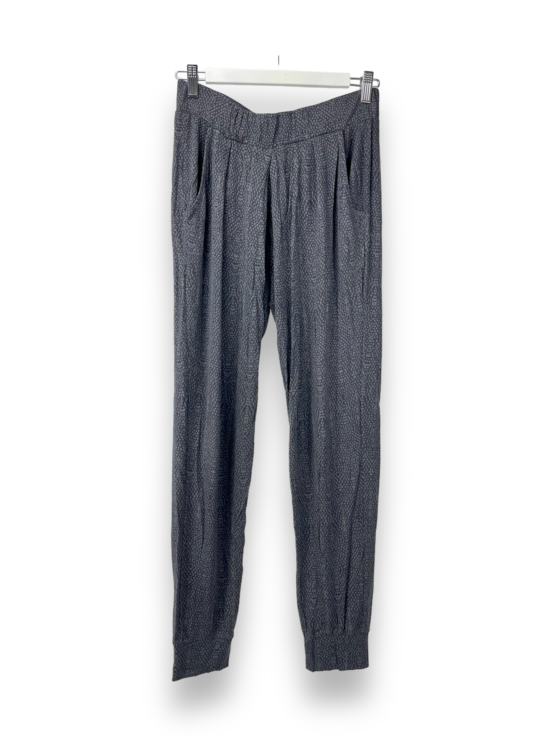 Die angenehme und locker geschnittene Stoffhose von OPUS kann gut in der Freizeit oder zu Hause zum herum liegen getragen werden. Die Hose ist komplett gemustert in blau und grau und hat am Bund einen Gummizug. Unten an den Beinen hat es Bündchen und zusätzlich bringt die Hose noch Seitentaschen mit sich.