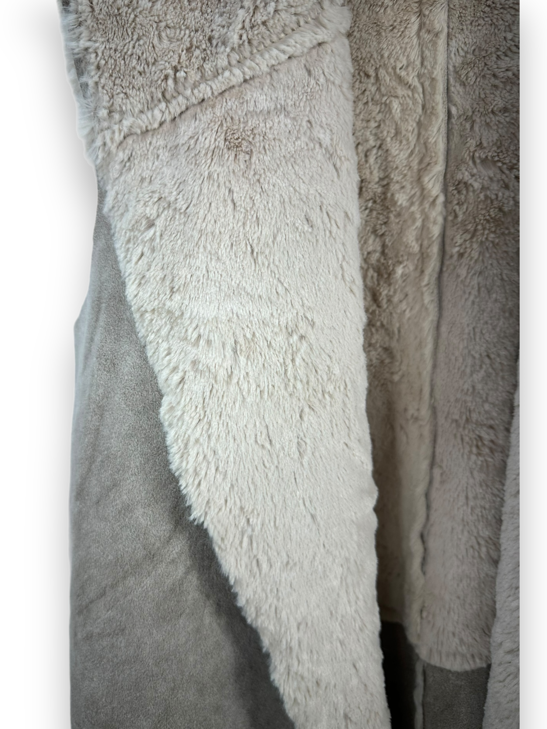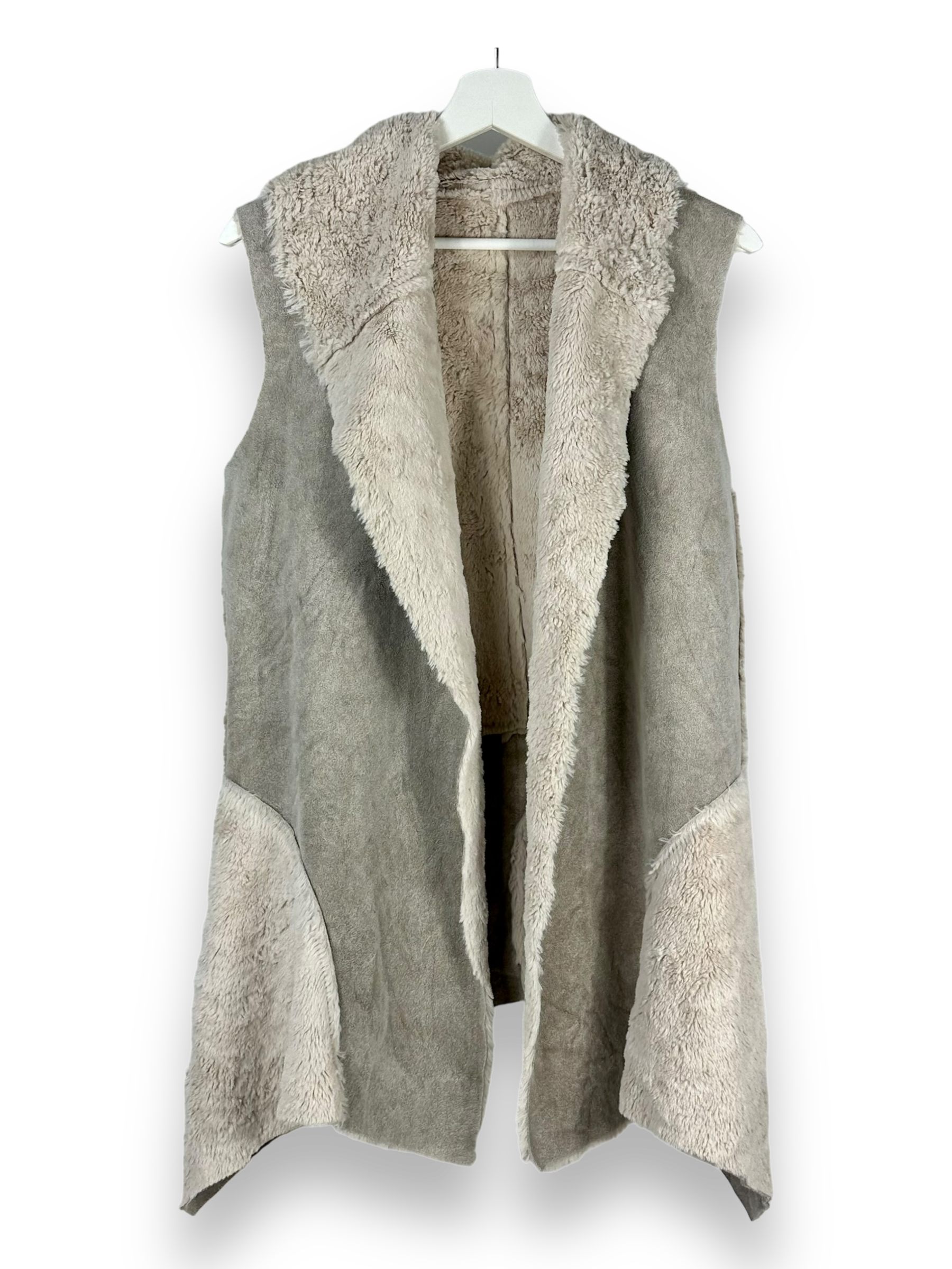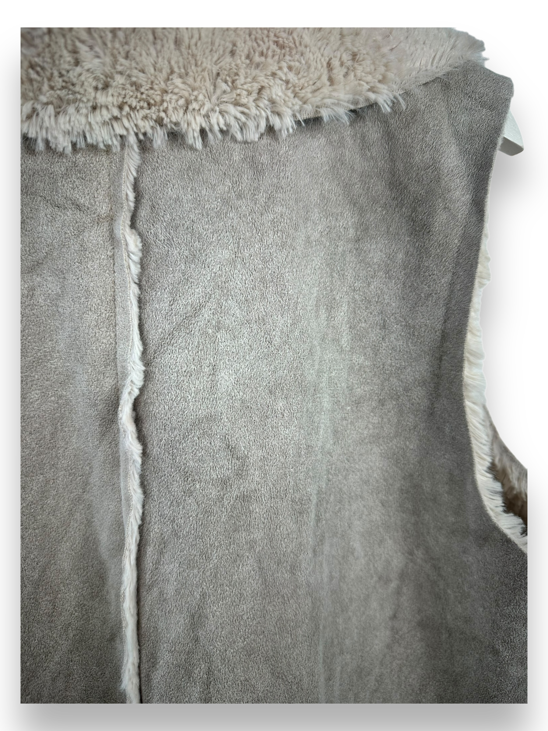Tauche ein in die Welt des zeitlosen Stils mit unserem beigen Fellgilet, das jedem Outfit eine luxuriöse Note verleiht. Dieses ärmellose Gilet präsentiert sich in einem eleganten Ecru-Ton und ist perfekt, um deinem Look eine subtile Raffinesse zu verleihen. Hergestellt aus hochwertigem Kunstfell und Kunstleder ist dieses Gilet nicht nur stylisch, sondern auch tierfreundlich.