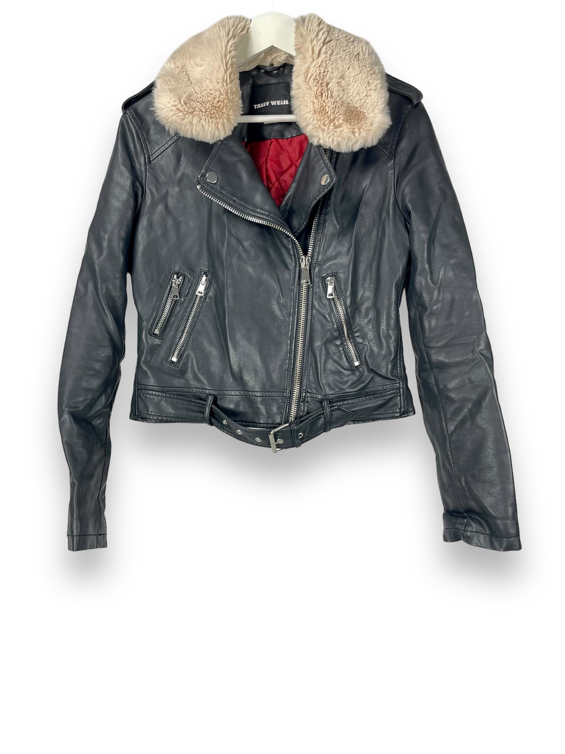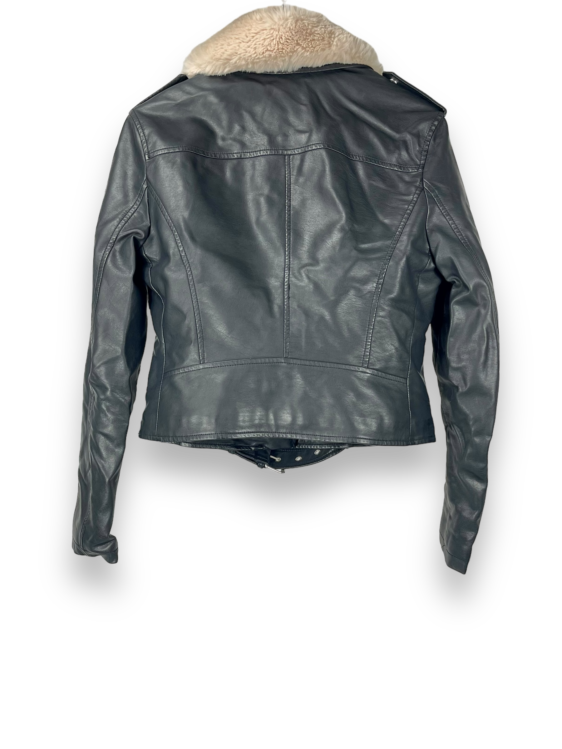Die Kunstlederjacke passt super für die Übergangszeit und kälteren Tagen. Der Fellkragen um den Hals ist Kunstfell und kann von der Jacke entfernt werden. Mit dem Reissverschluss kann die Jacke verschlossen werden und die Schnalle unten ist ein toller zusätzlicher Hingucker und Verschluss.