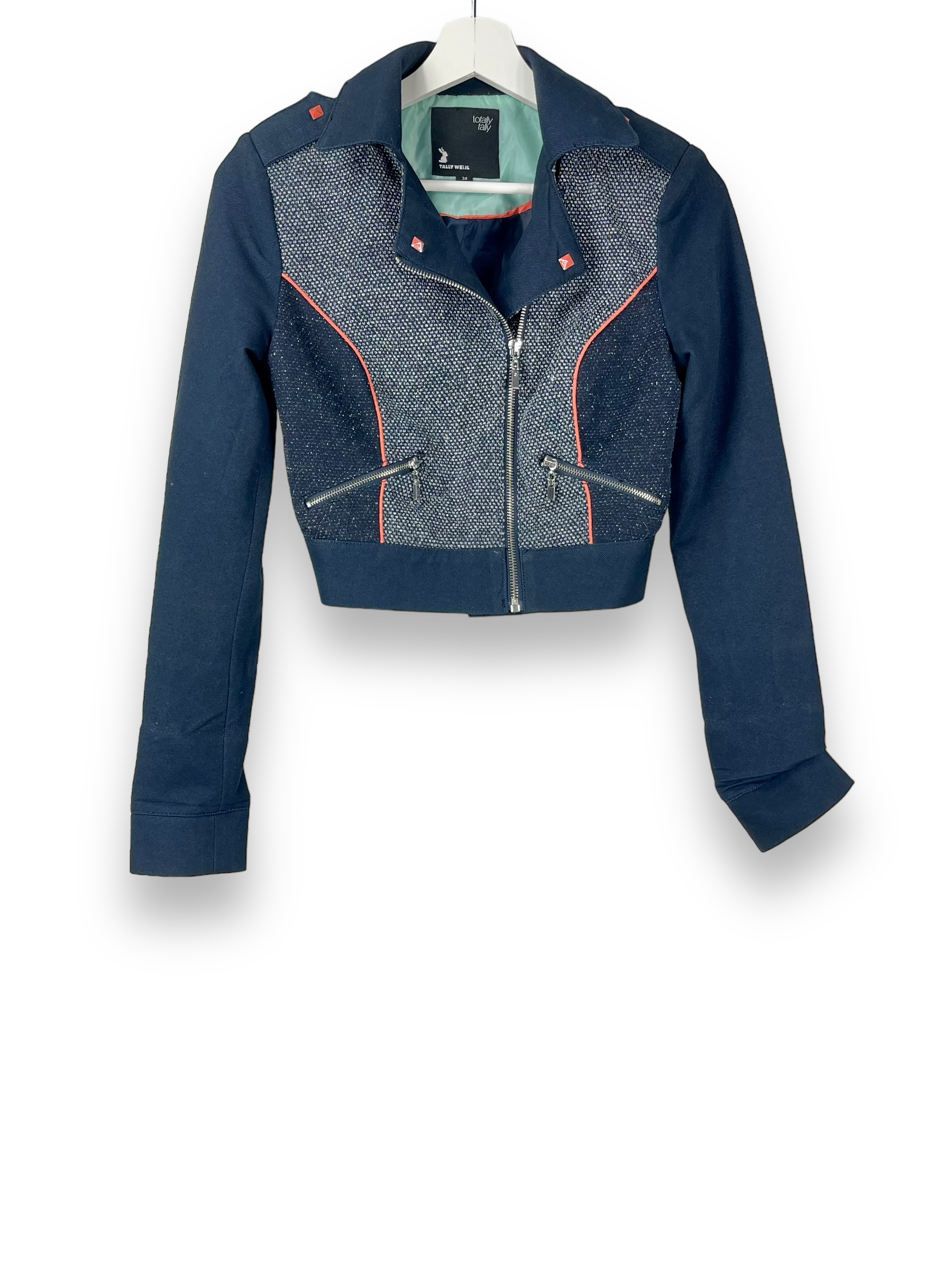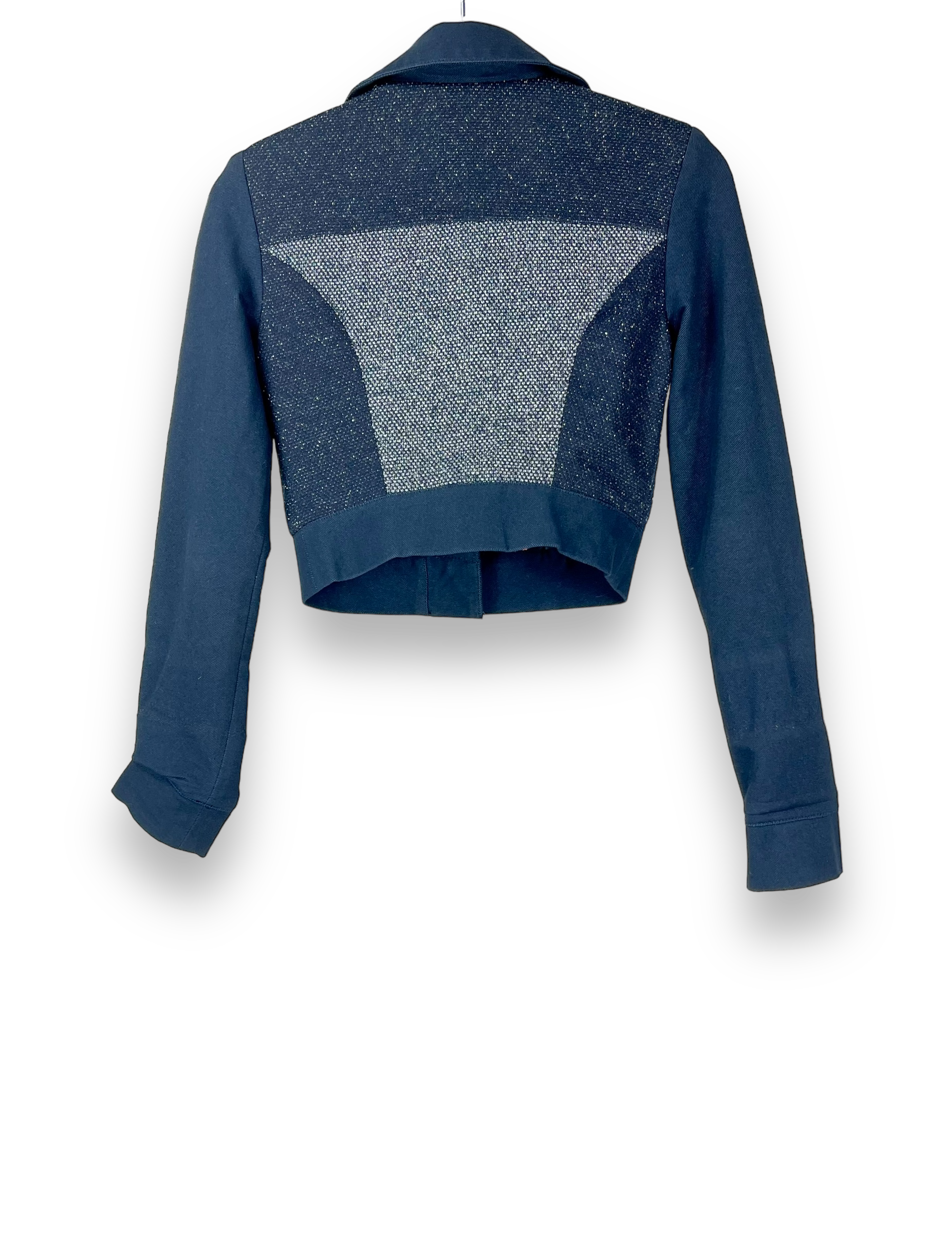 Bist du auf der Suche nach einer Stoffjacke, die auch als sportlicher Blazer getragen werden kann? Dann könnte dieser passen. Verschliessbar lässt sich diese Jacke mit einem Reissverschluss. Der Stoff ist mehrfarbig und an einigen Stellen meliert.