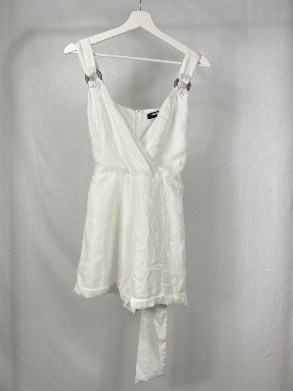 Der Jumpsuit von Fashion Union ist super bequem und passt jederzeit. Er ist kurz geschnitten, ärmellos und tailliert mit einem Band, welches man vorne oder hinten zusammen binden kann.