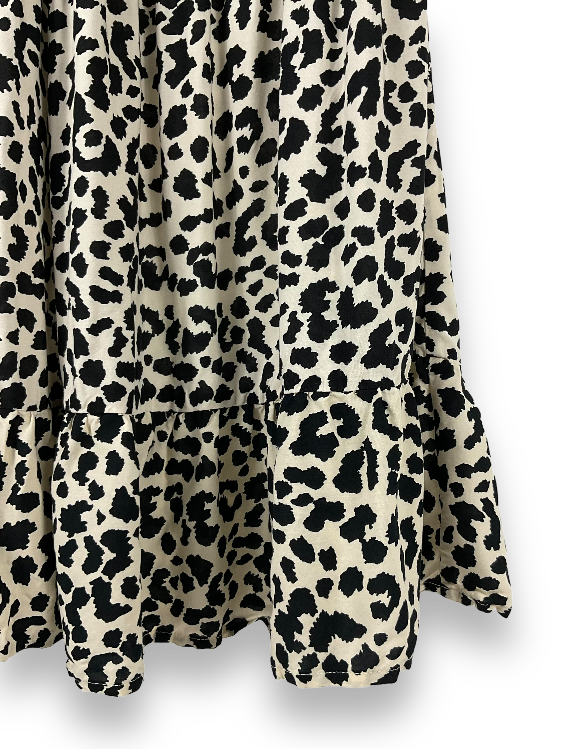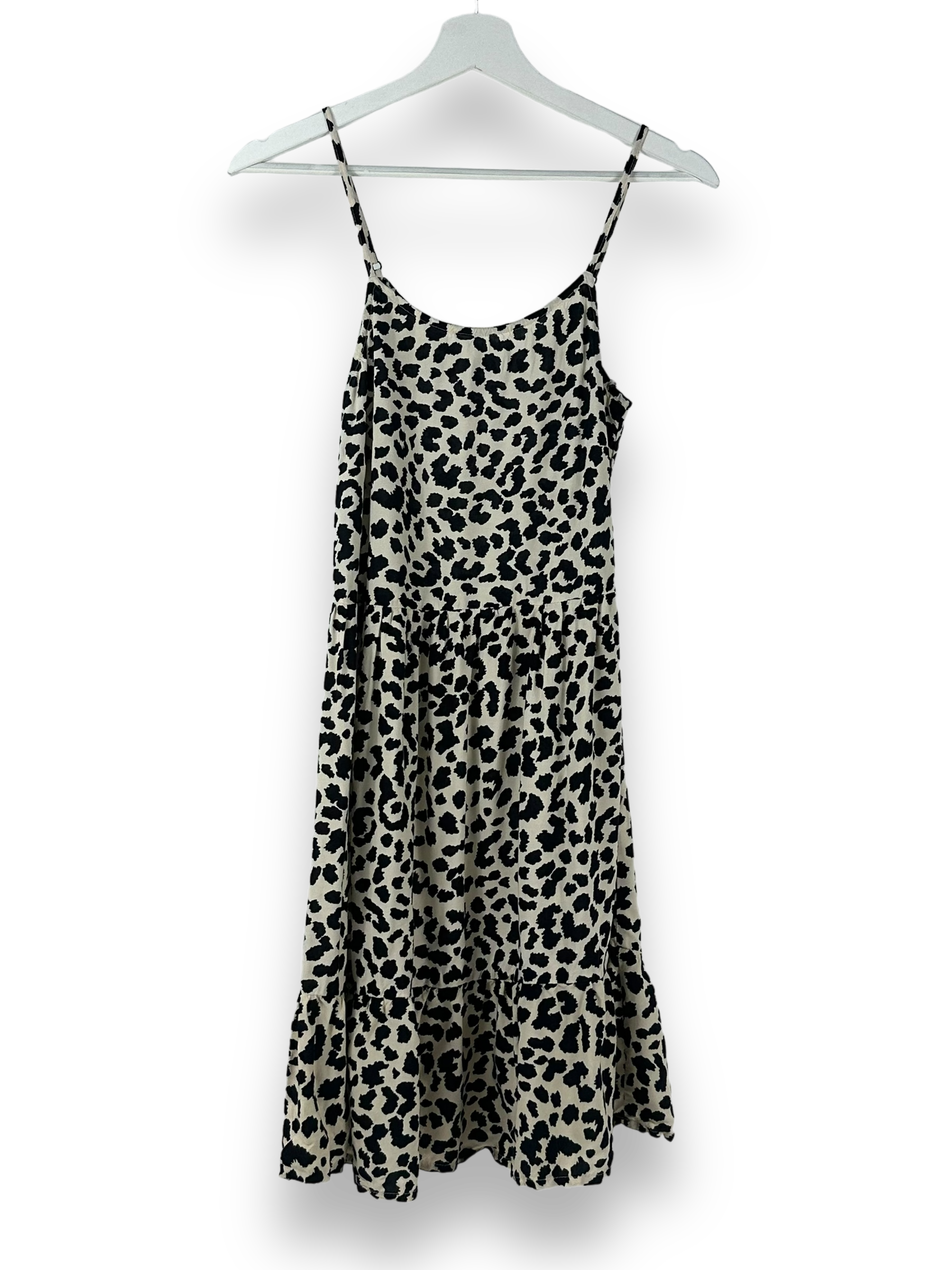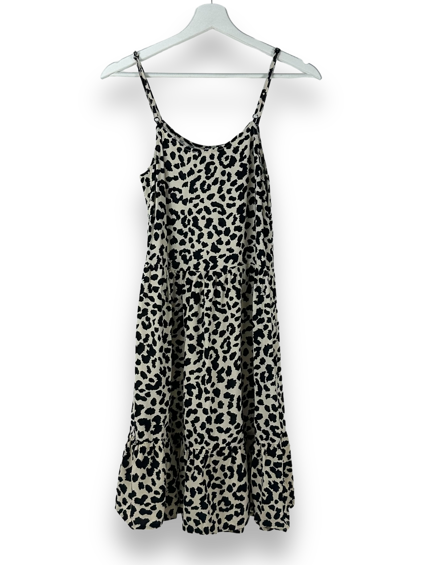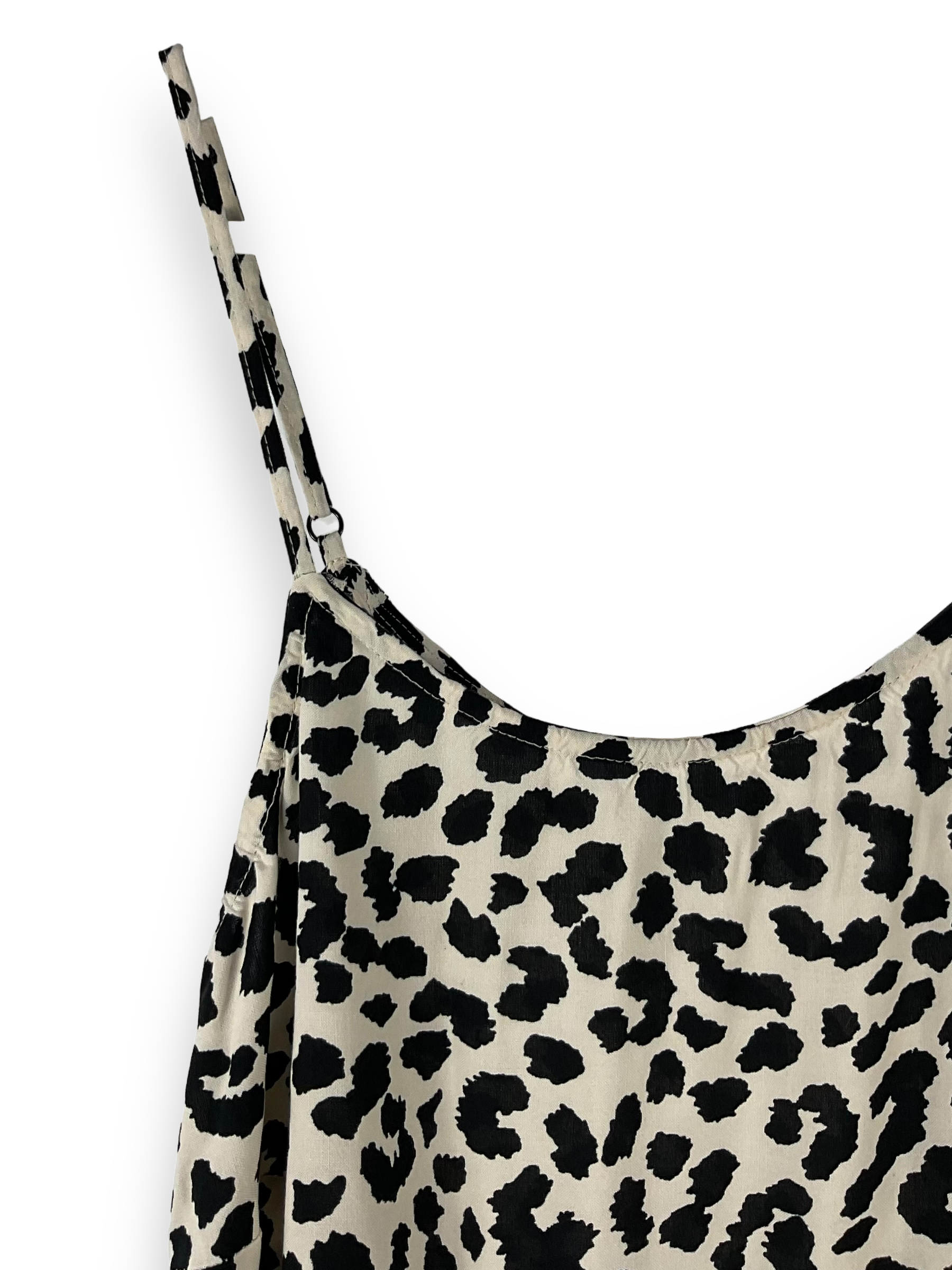 Das Leopardenmuster verleiht diesem Kleid einen Hauch von Wildheit und Individualität, während die verstellbaren Spaghettiträger dir die Möglichkeit bieten, die Passform nach deinen Wünschen anzupassen.