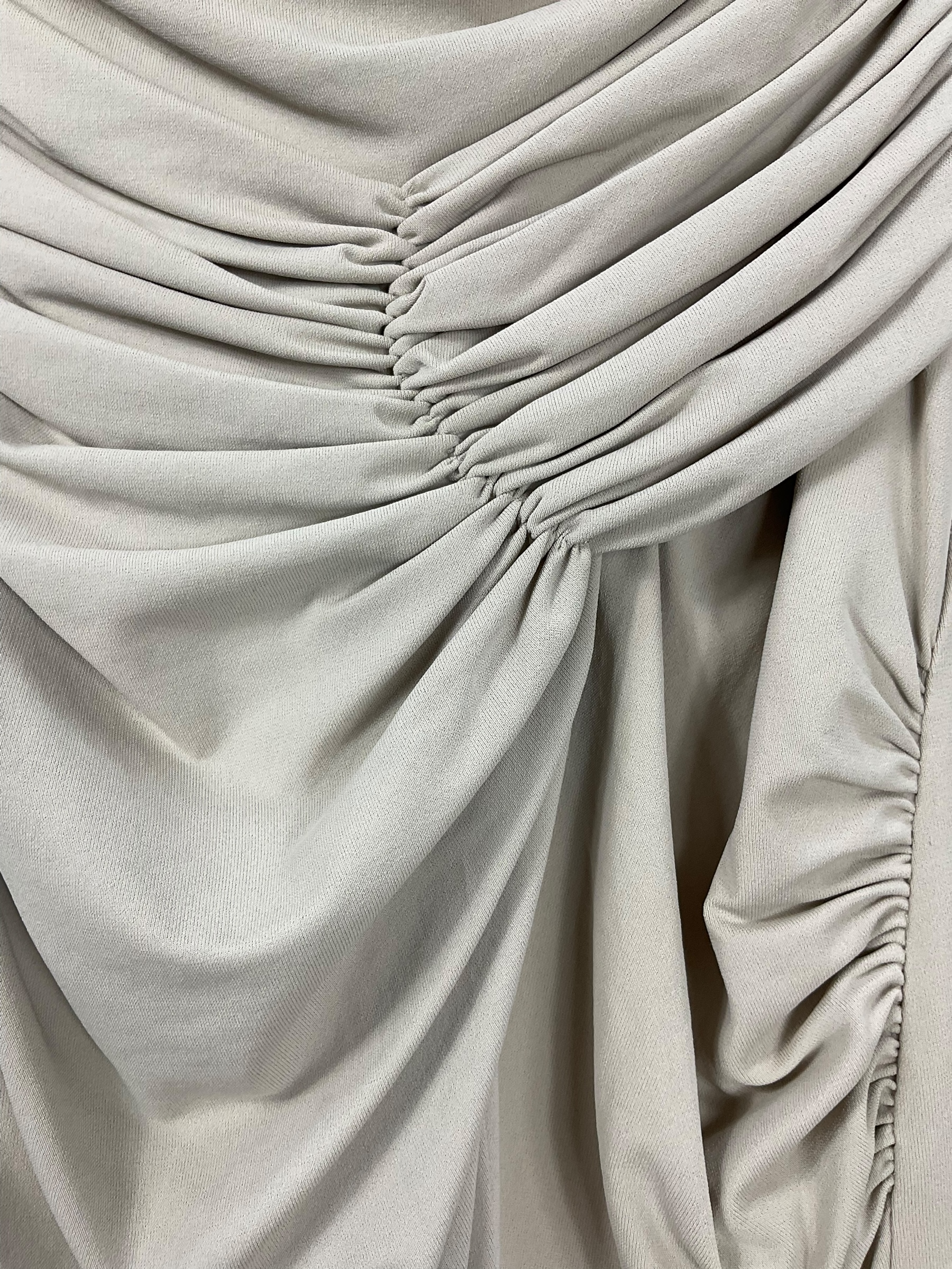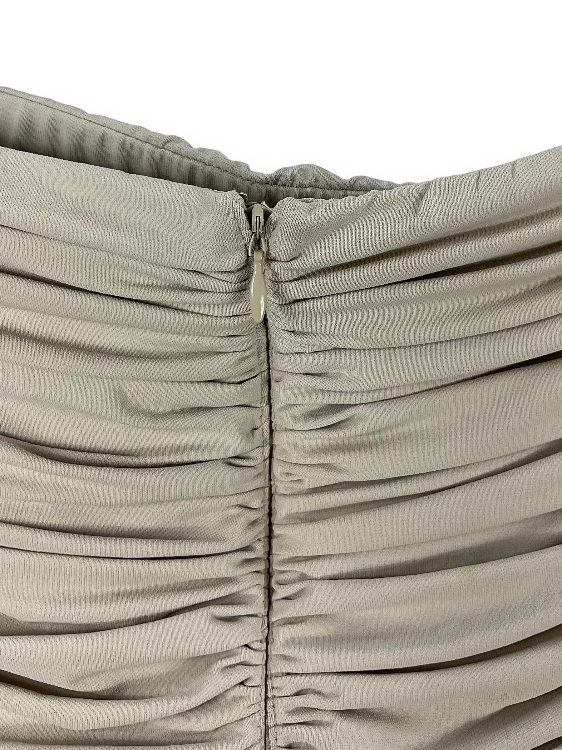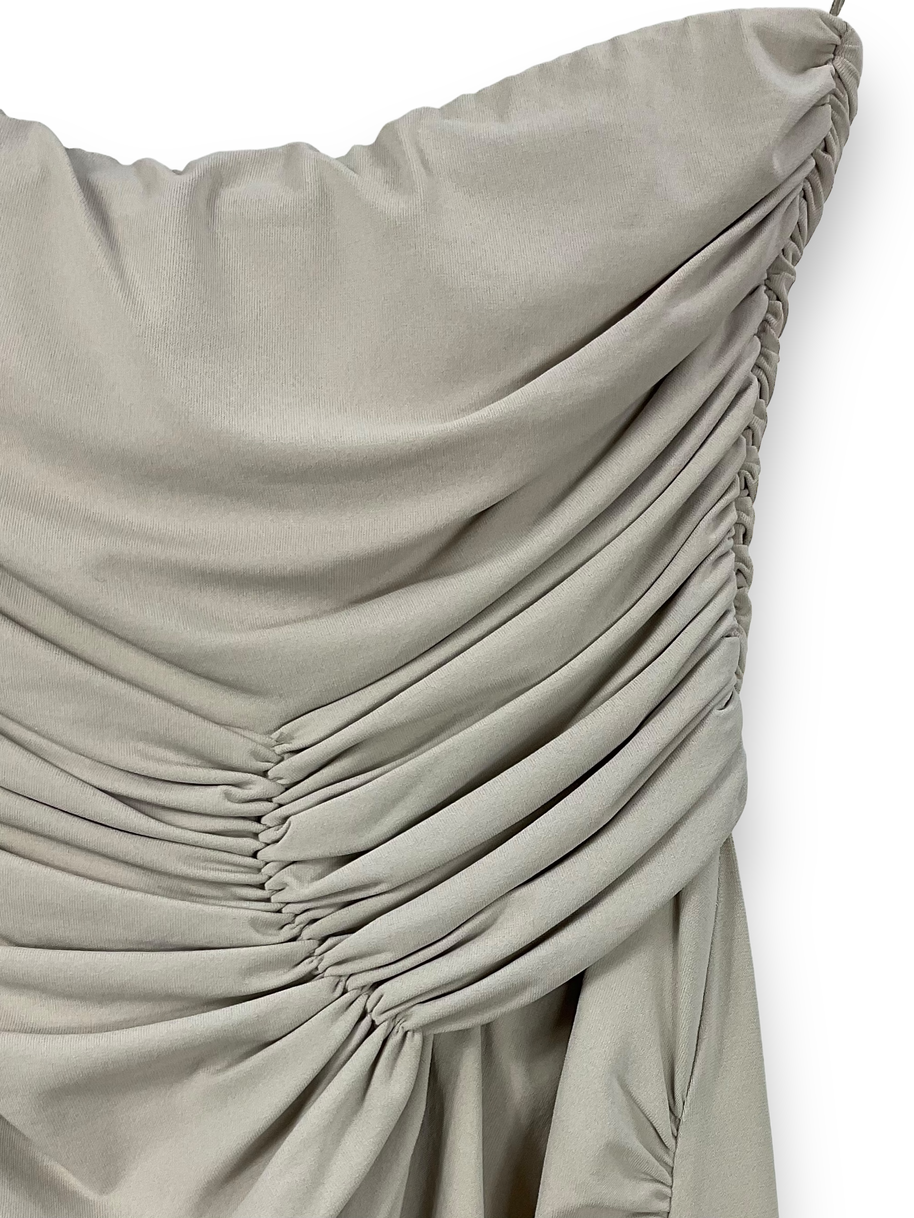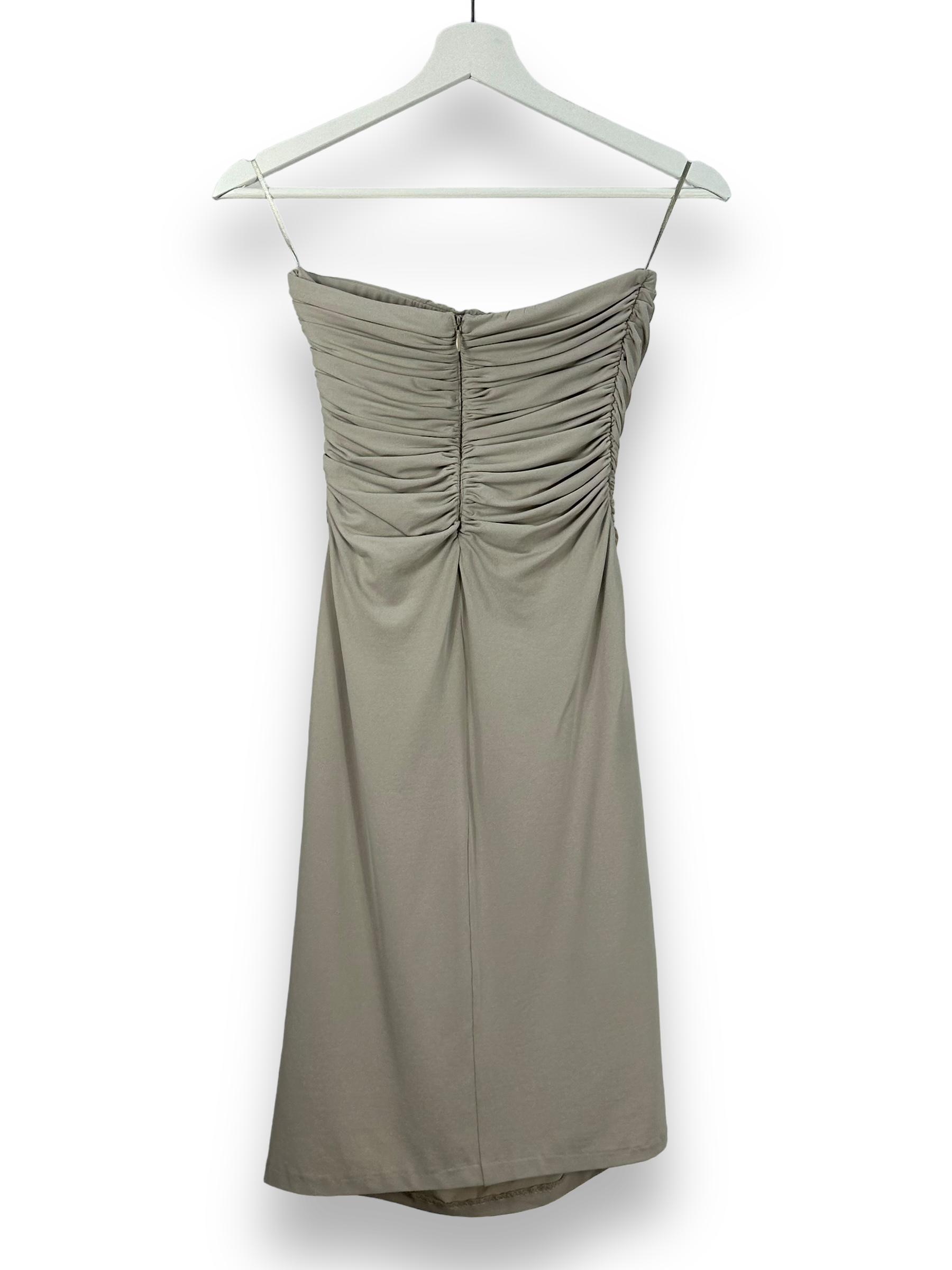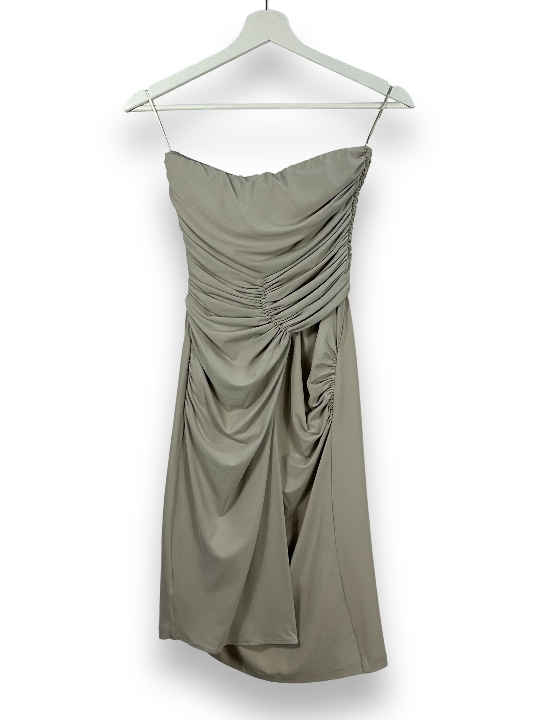 Wir präsentieren dir ein zauberhaftes Kleid, das sich perfekt für verschiedene Anlässe eignet. Das Jerseykleid, in einer harmonischen Kombination aus Beige, Grau und Graubeige, verleiht dir eine stilvolle Ausstrahlung. Sein oberschenkellanger Schnitt und das trägerlose Design mit Dekolleté-Ausschnitt betonen deine feminine Seite.