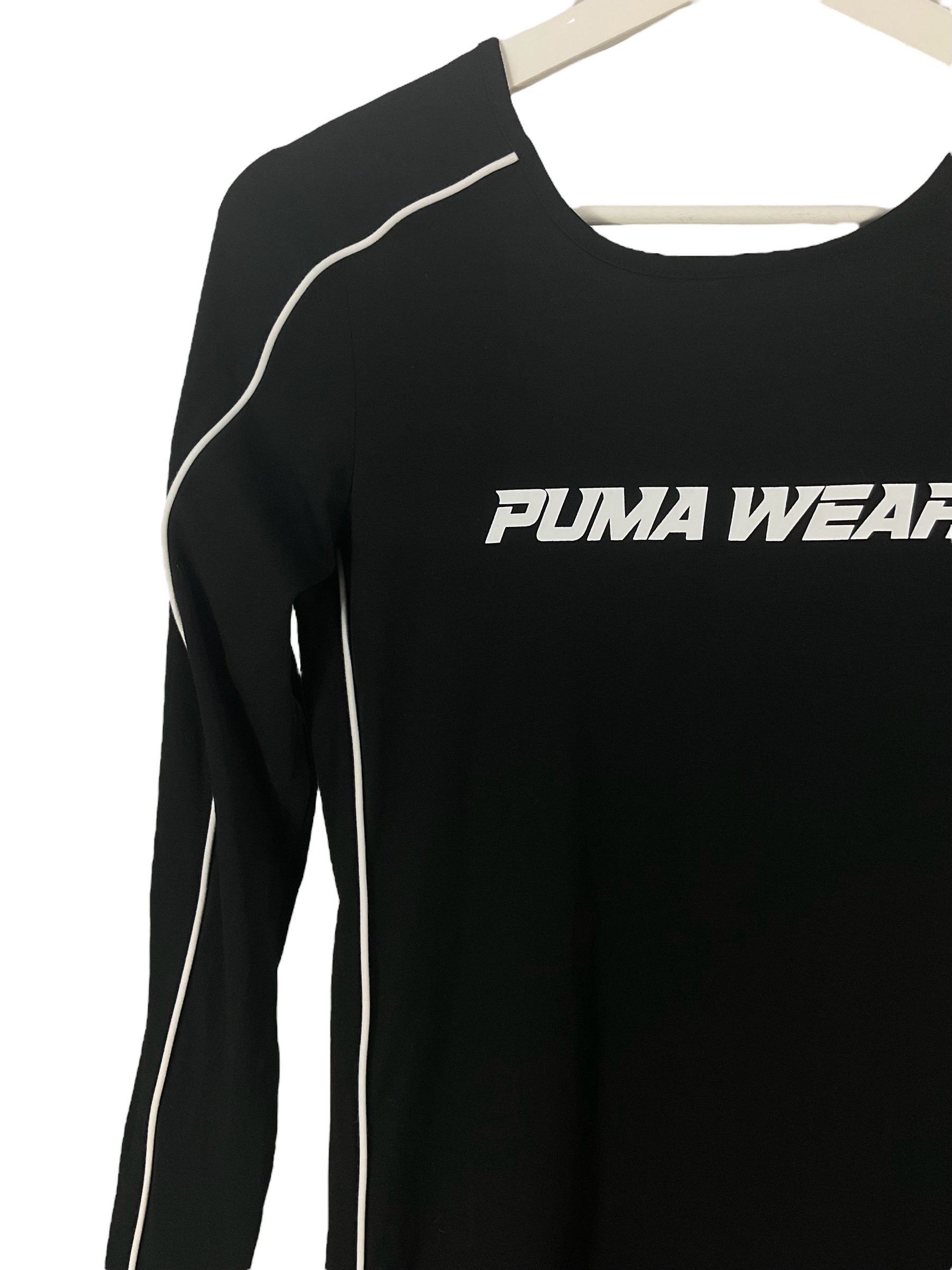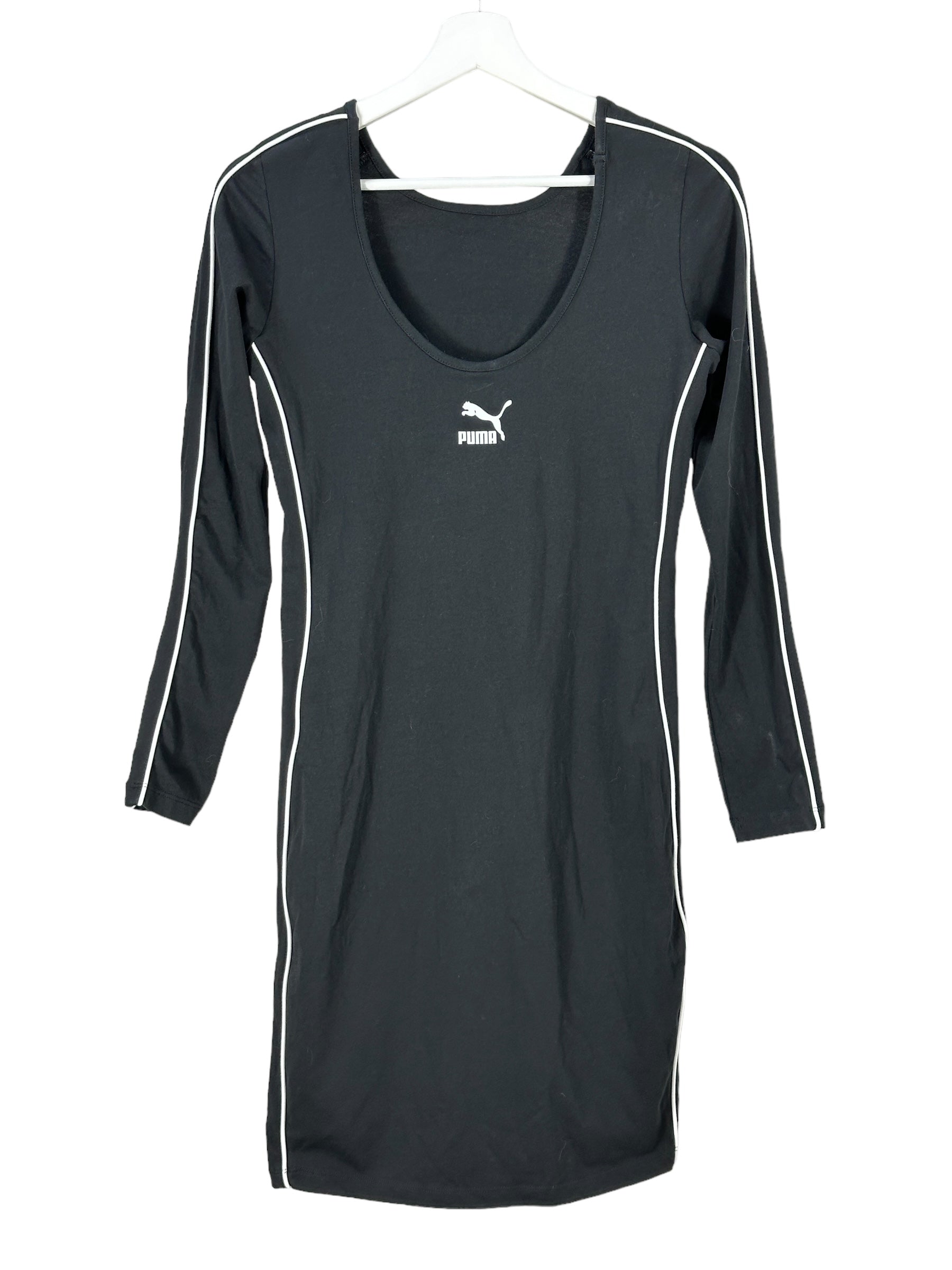 Entdecke dieses schicke Jerseykleid von PUMA, das perfekt für den Sommer ist. In einem klassischen Schwarz-Weiss-Design und mit feinen Streifen an den Ärmeln ist dieses Kleid ein echter Hingucker. Es ist oberschenkellang und hat lange schmale Ärmel, die für einen eleganten Look sorgen.