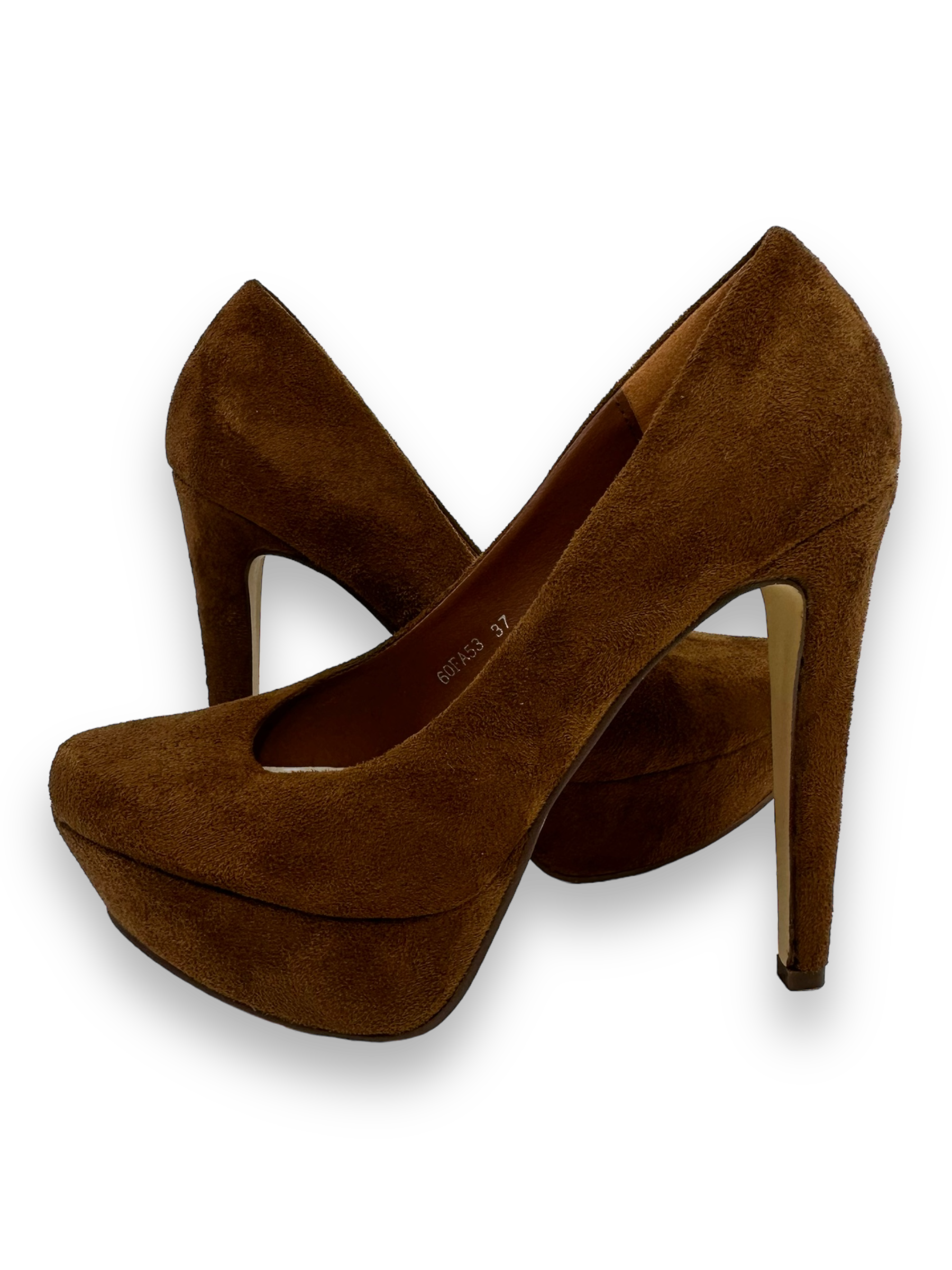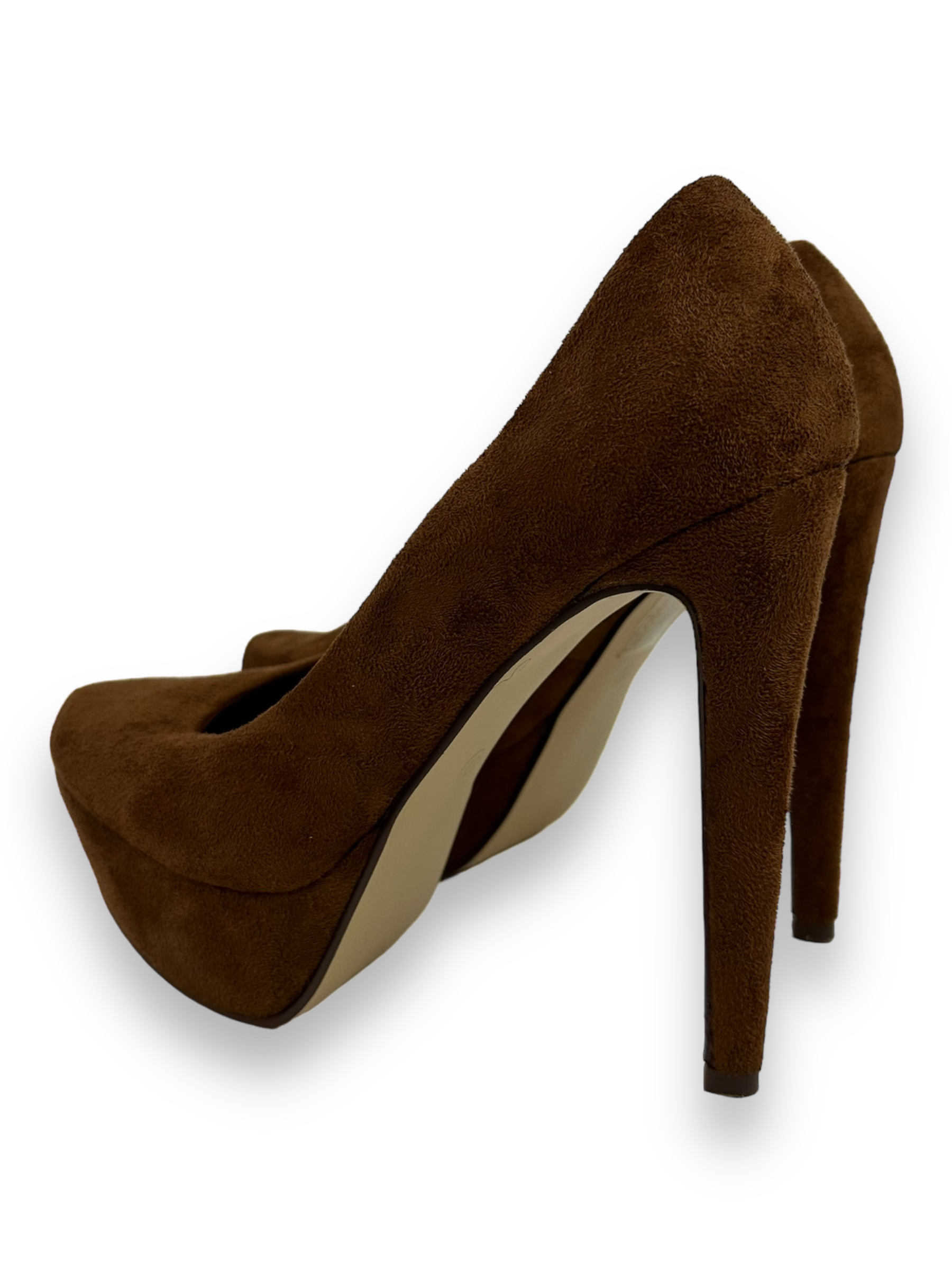 Die High Heels verfügen über einen Bleistiftabsatz einem Plateau, was für zusätzlichen Komfort und Stabilität sorgt. Hergestellt aus Kunstleder in Velours-Optik präsentieren sich die Pumps in einem sehr guten Zustand. Mit ihrem stilvollen Design und der gelungenen Kombination aus Farbe, Absatzhöhe und Plateau sind sie eine attraktive Wahl für verschiedene Anlässe.
