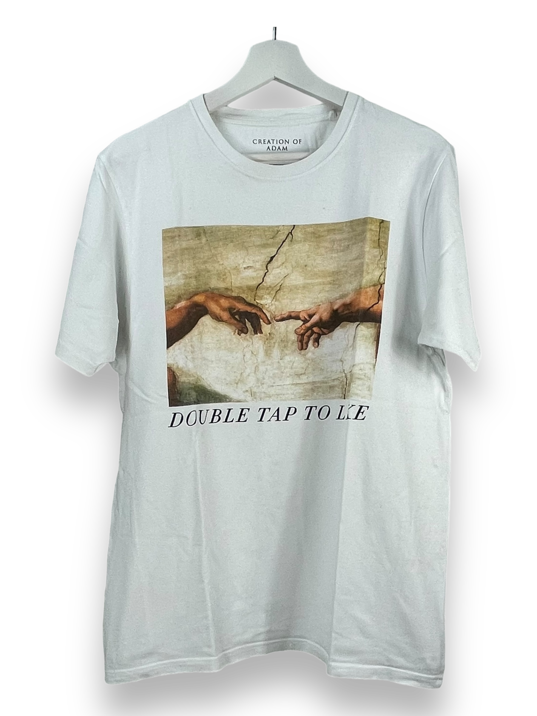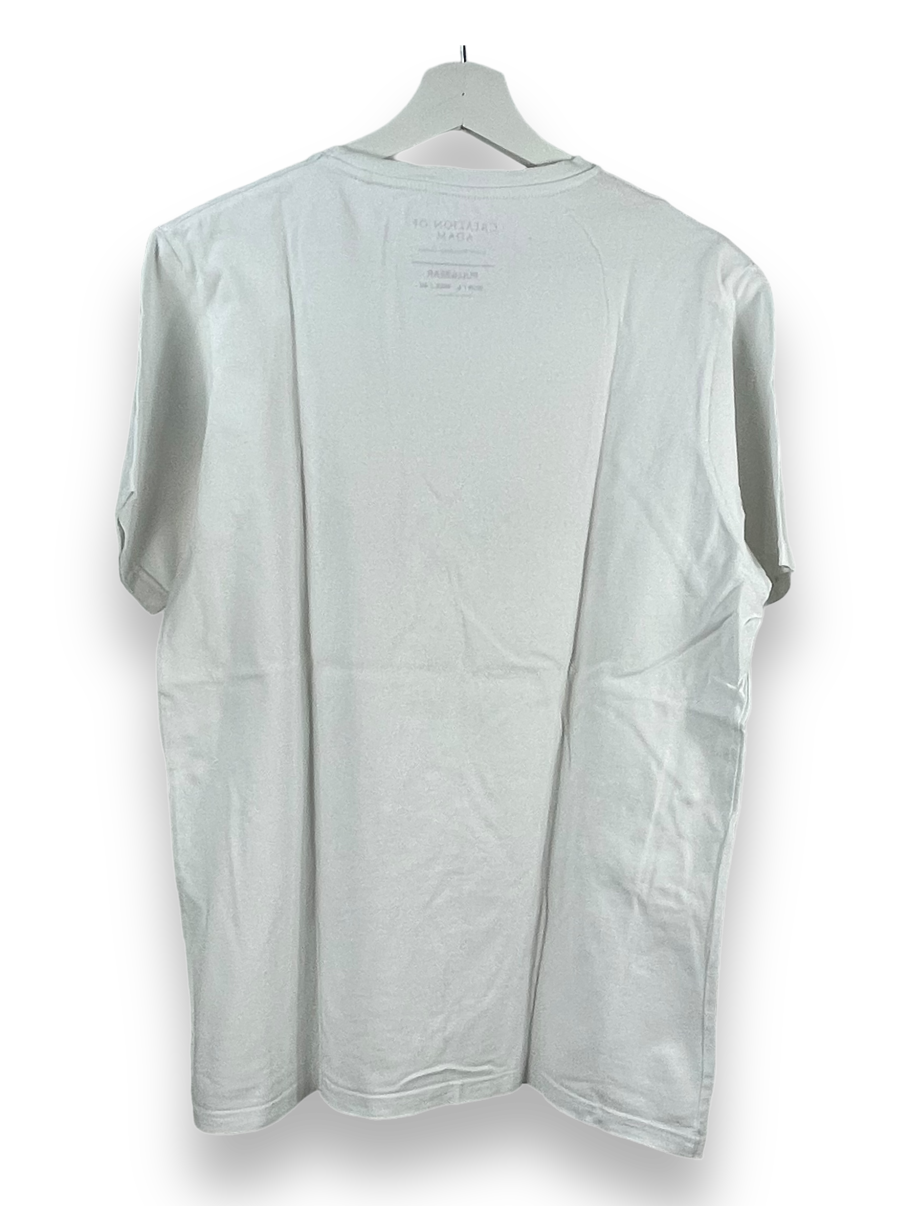 Hier haben wir ein uni weisses kurzarm T-Shirt von Pull&Bear mit einem Druck von einem Bild, vorne auf der Brust.