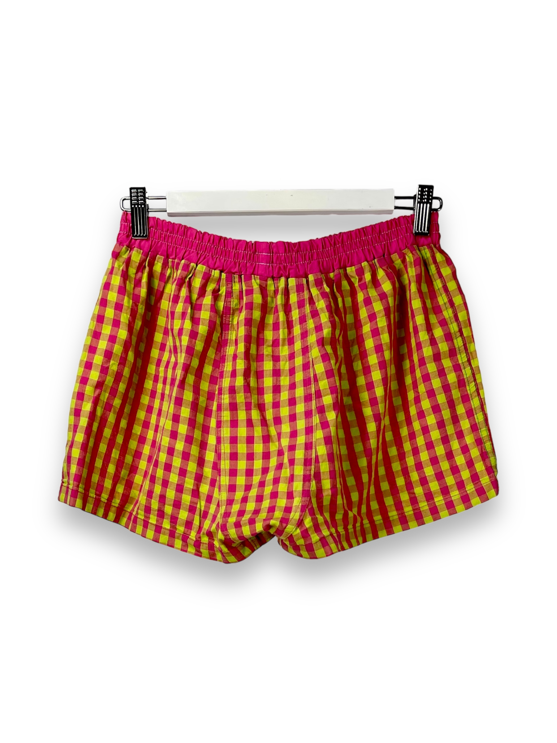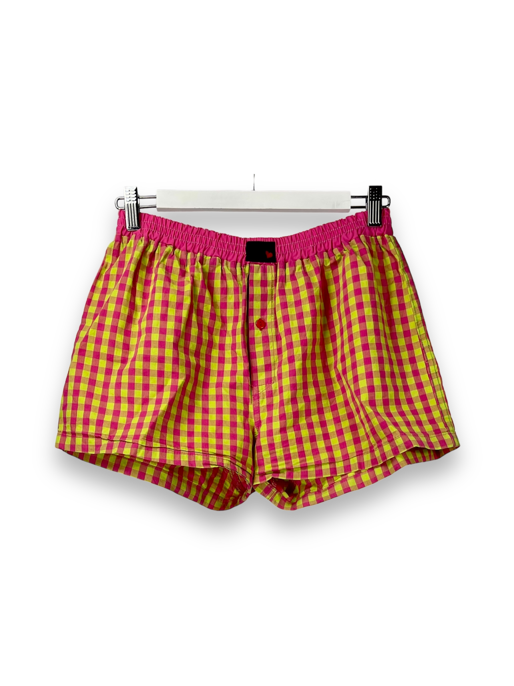 Die Schlafhose von Unabux besteht aus 100% Baumwolle, ist angenehm beim tragen und pflegeleicht. Sie ist grün und pink kariert und kann auch als lässige Freizeit-Shorts getragen werden.