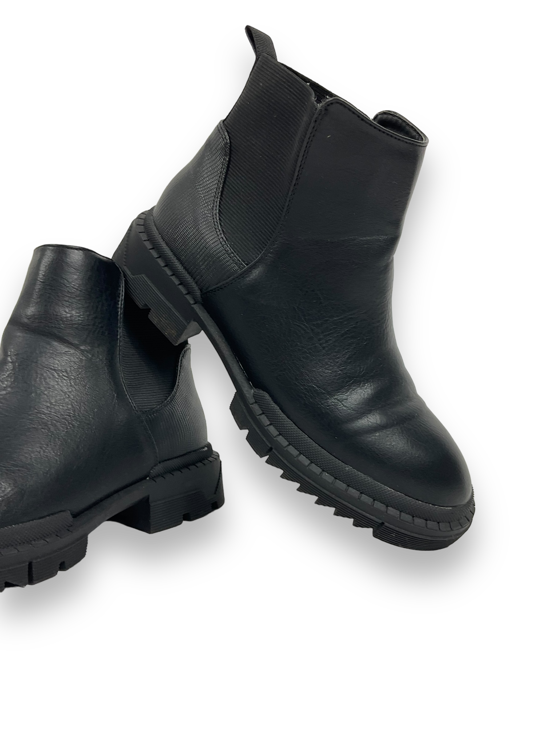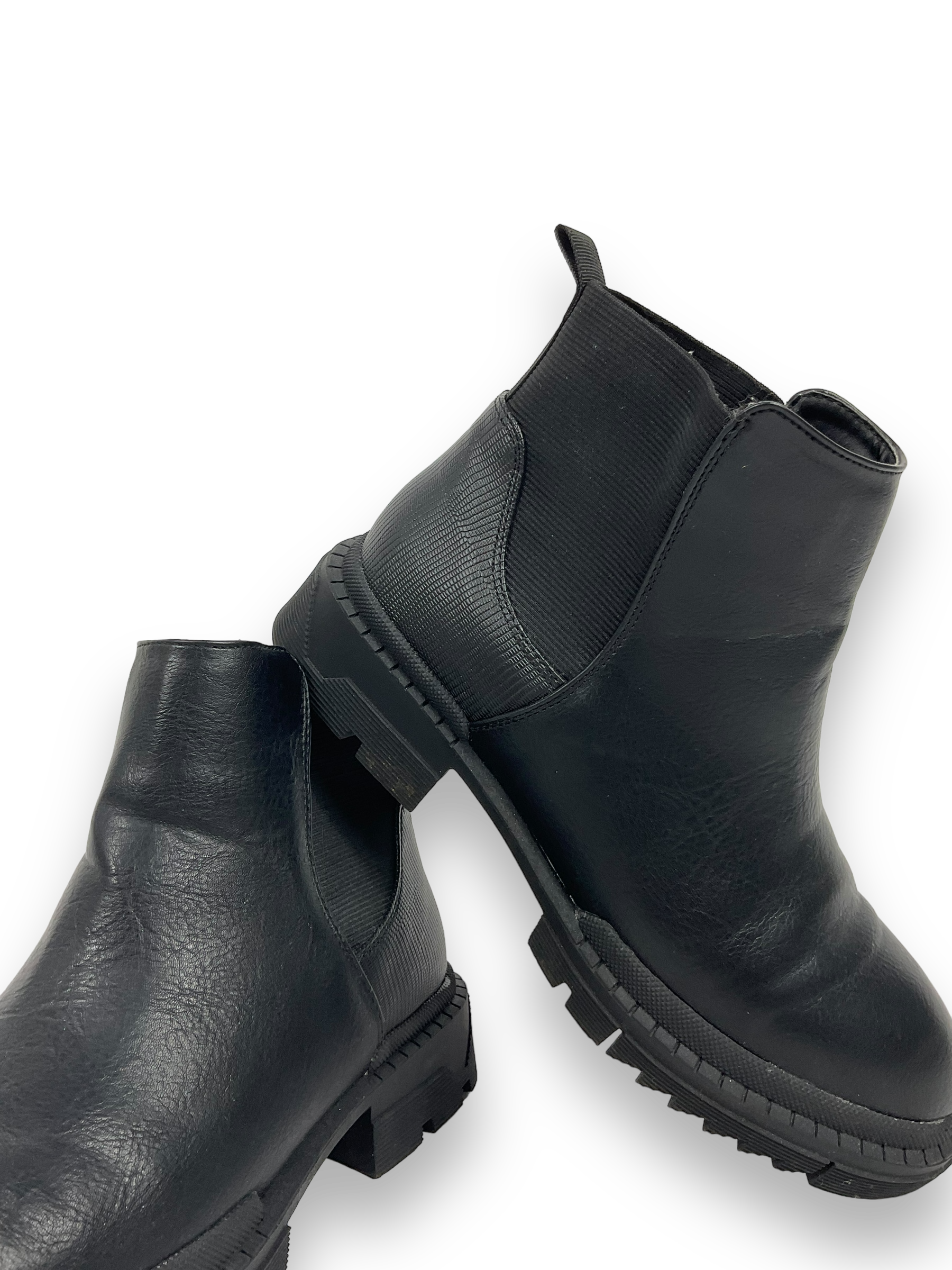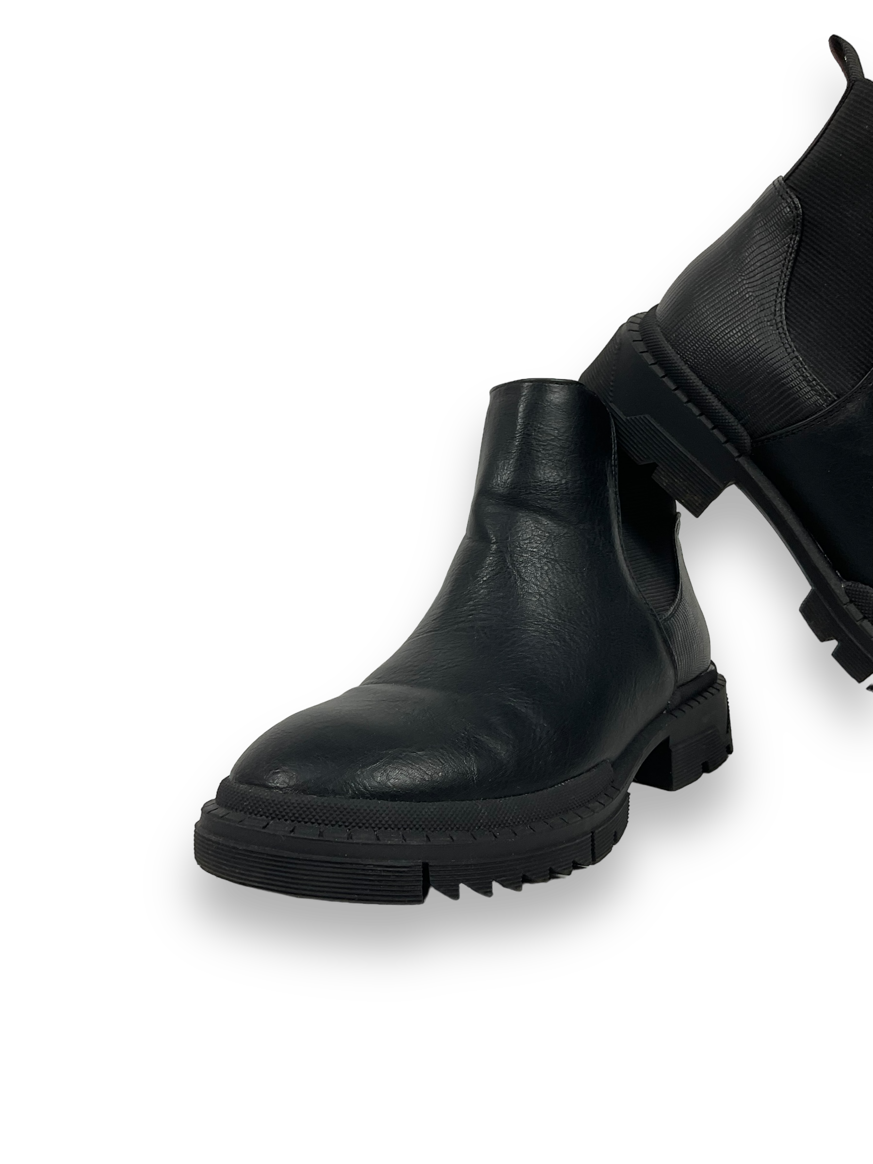 Diese Ankle Boots sind vielseitig und stilvoll, perfekt für verschiedene Anlässe. Mit ihrem schlichten und eleganten schwarzen Design sind sie ein zeitloser Klassiker. Die klobige Sohle verleiht diesen Stiefeletten nicht nur einen modernen Look, sondern bietet auch hervorragenden Tragekomfort. Das Gummiband oben macht das An- und Ausziehen mühelos und sorgt für eine bequeme Passform.