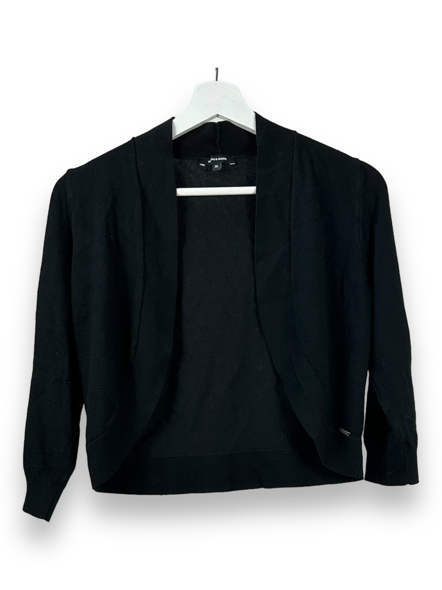 Das offene Design vorne macht das An- und Ausziehen mühelos und verleiht Ihrem Look eine lässige Note. Ob über einem Kleid oder einem einfachen Top getragen, dieser Bolero komplettiert Ihr Outfit mit Stil und Raffinesse. Trotz seiner Secondhand-Natur befindet sich die Strickjacke in gutem Zustand und bietet Ihnen eine zuverlässige Ergänzung für Ihre Garderobe.