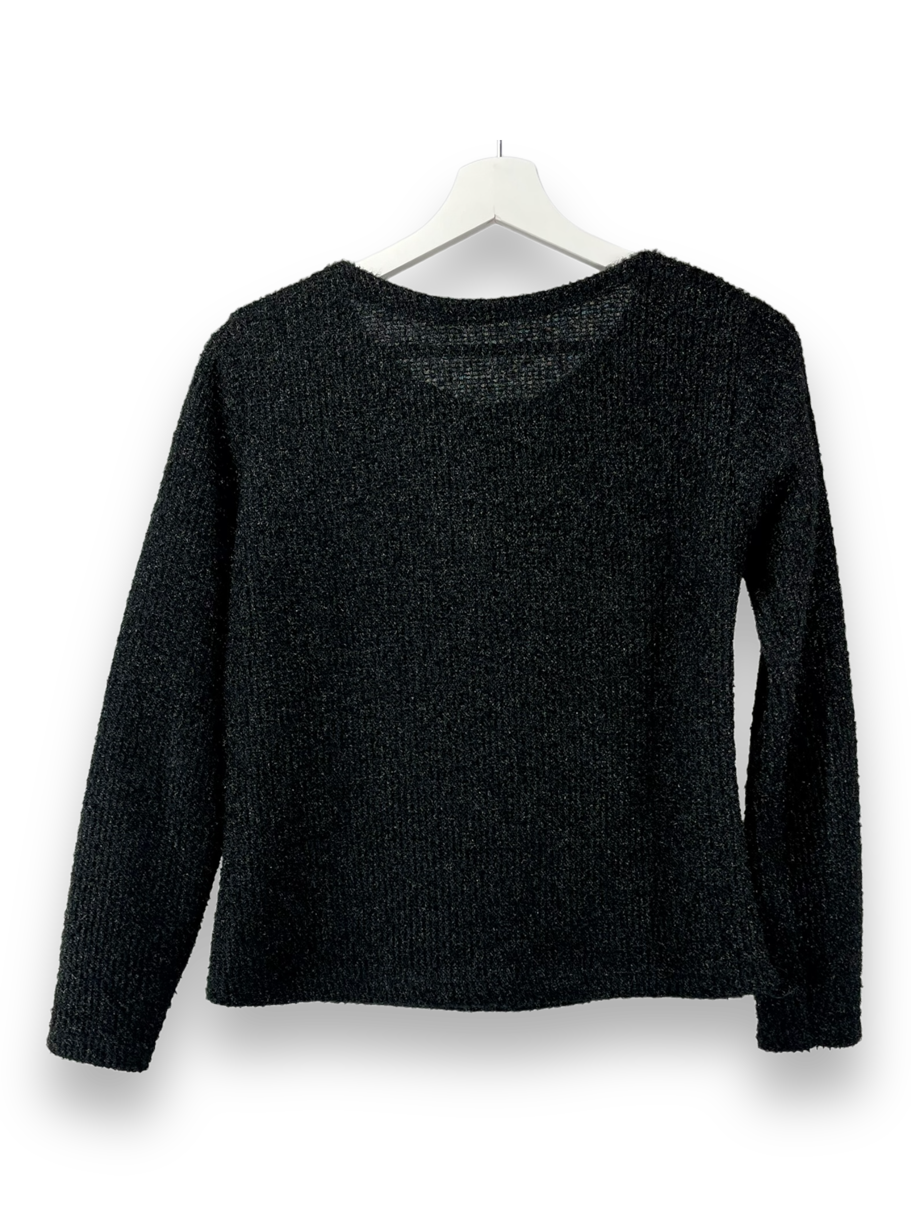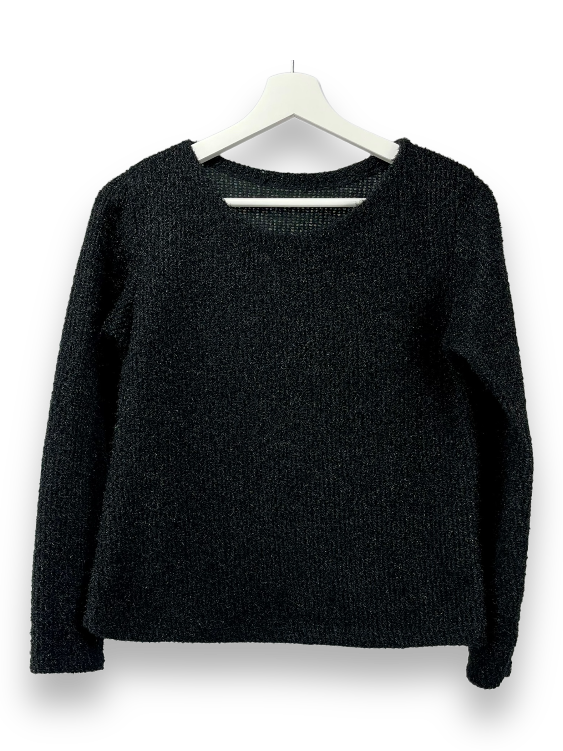 Dieser Strickpullover ist uni schwarz mit einem leichten Glanz und befindet sich in einem guten Zustand.