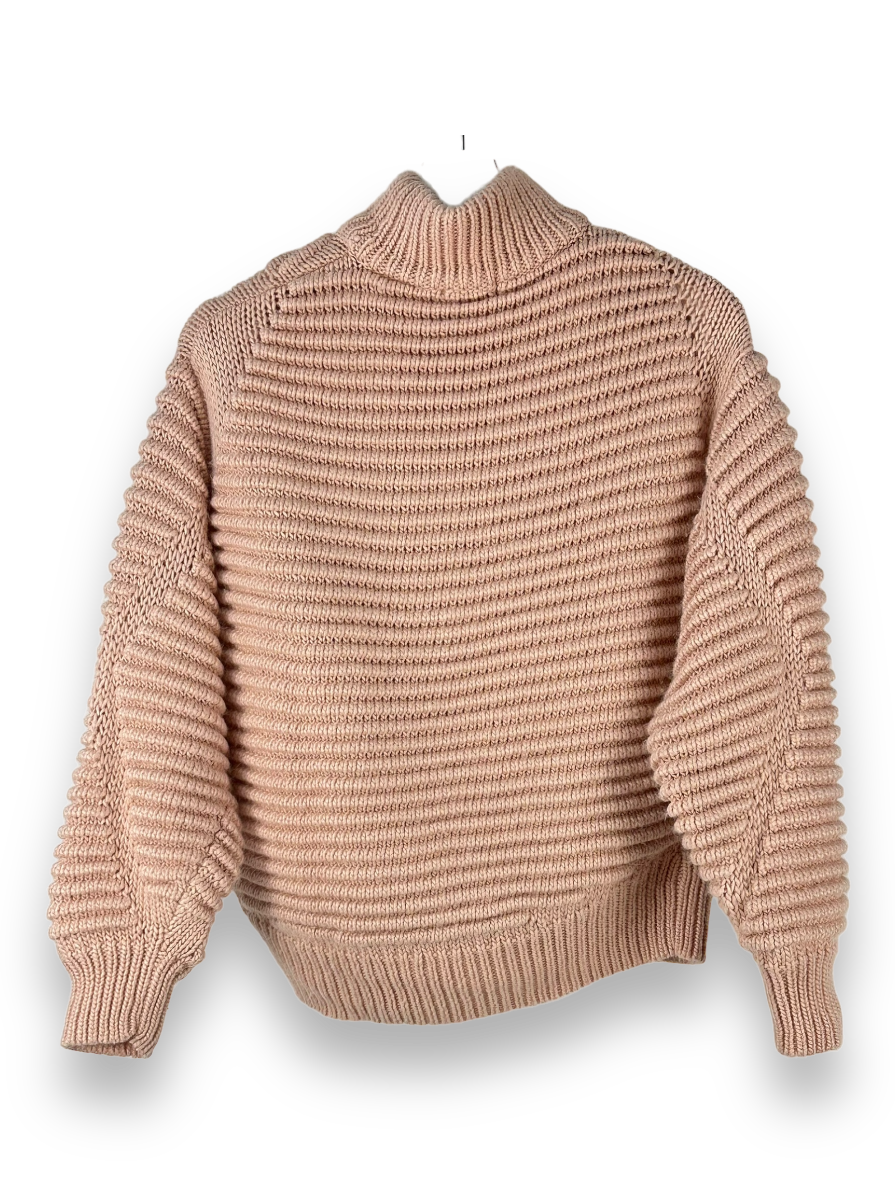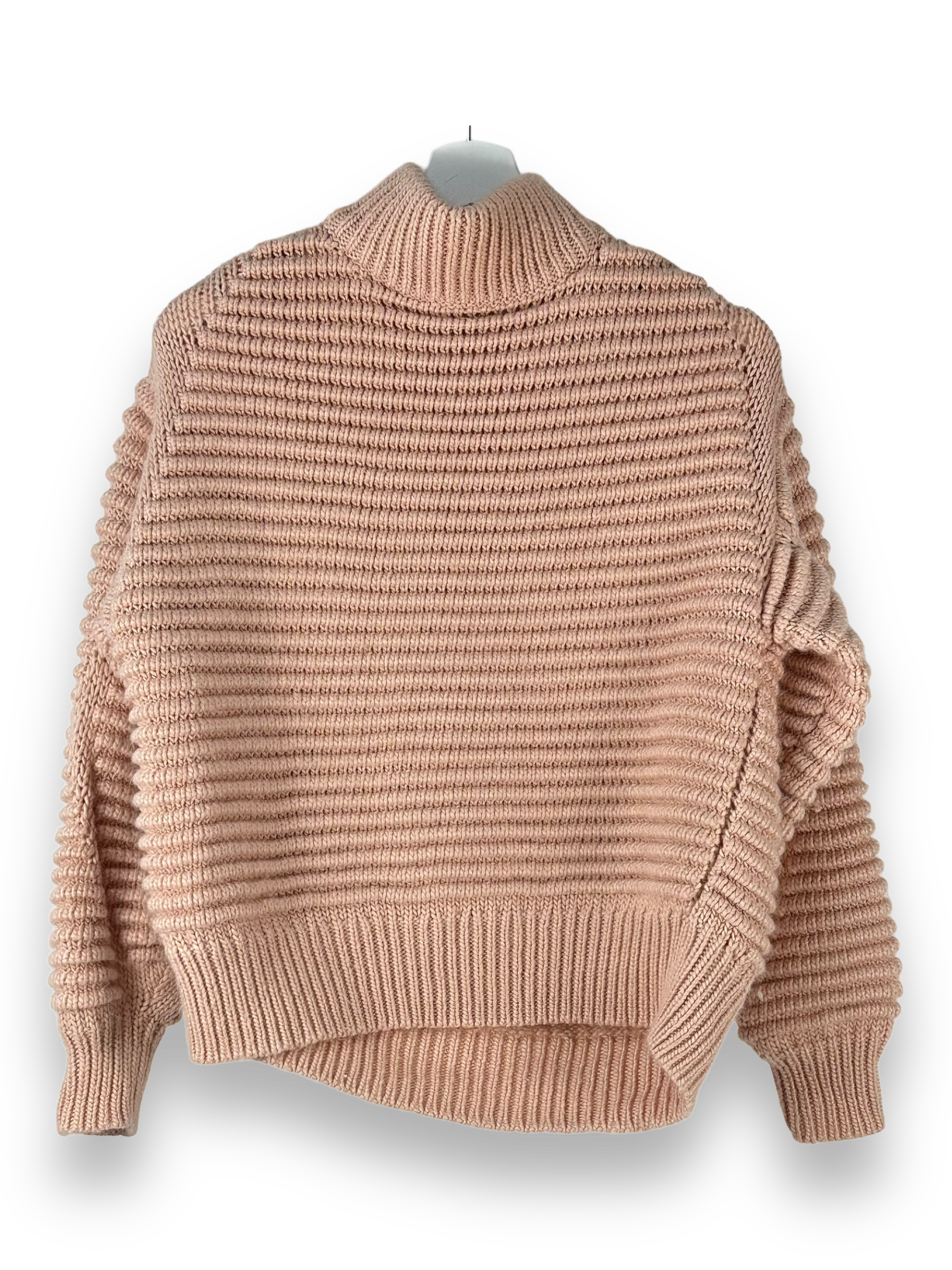 Mit seiner einfarbigen, hellrosa Farbe und dem Stehkragen strahlt dieser Pullover schlichte Eleganz aus. Die langen Ärmel halten dich an kühleren Tagen angenehm warm.