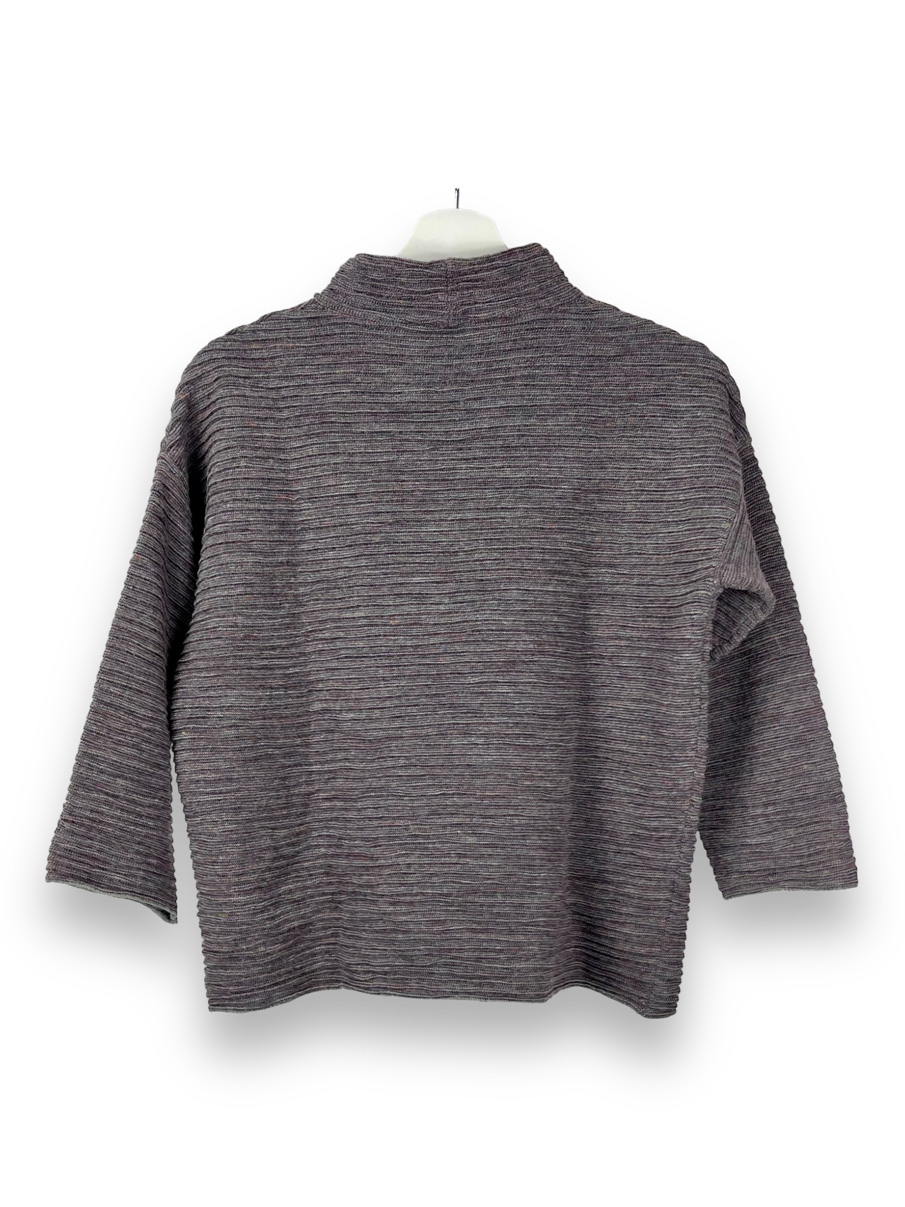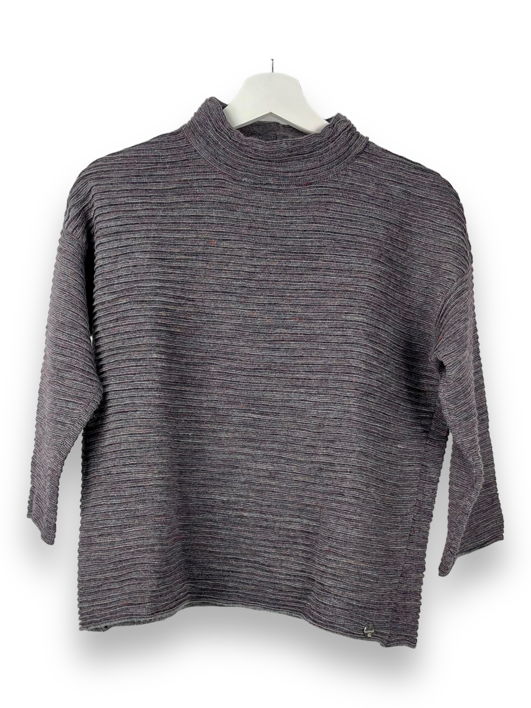 Hier haben wir einen wärmenden Strickpullover von Rich&Royal für die kalten Tage. Der Pullover hat 3/4 lange Ärmel und einen feinen Rollkragen. Die Oberfläche ist meliert in grau, violett und weiteren verschiedenen Farben.