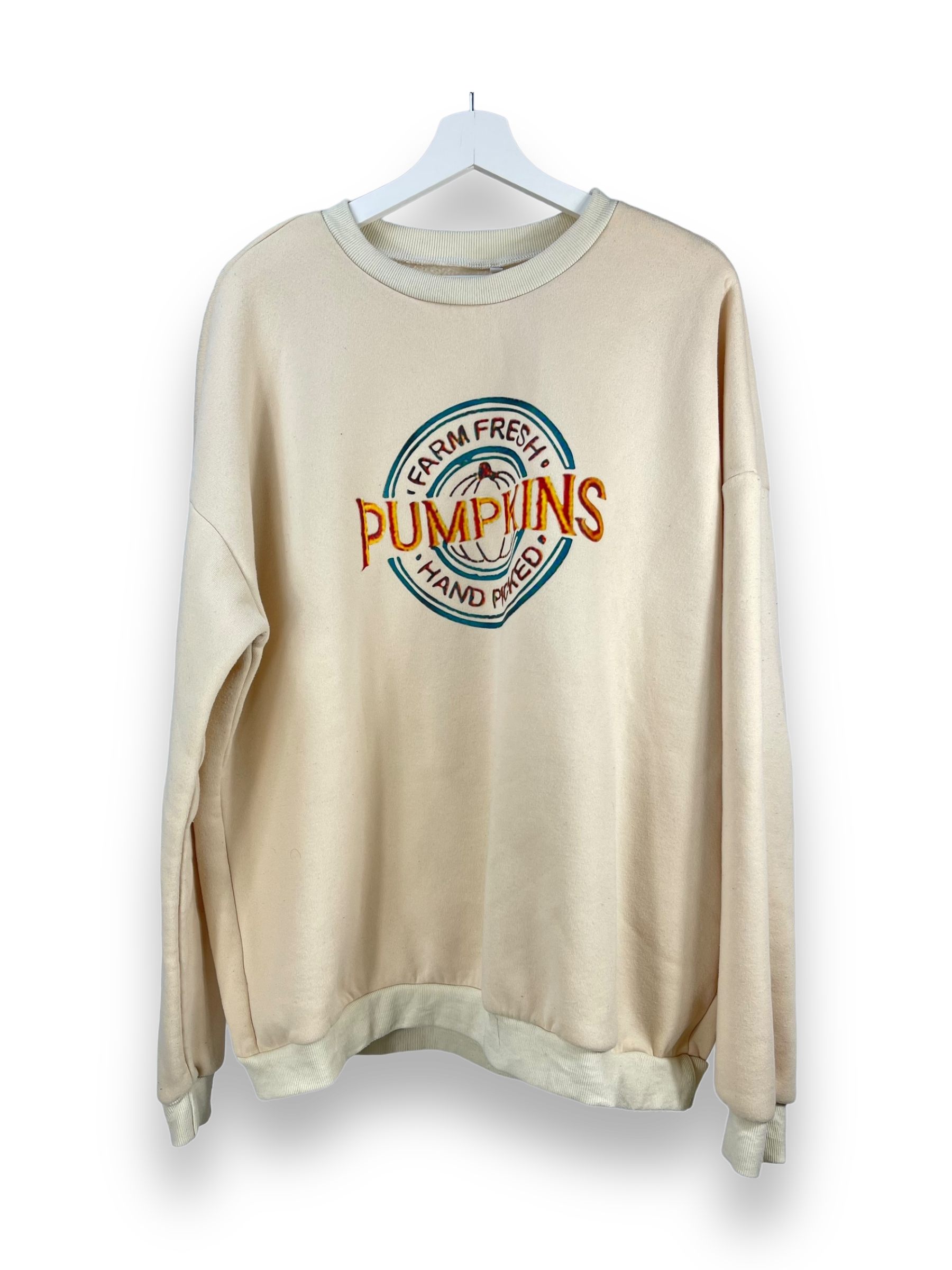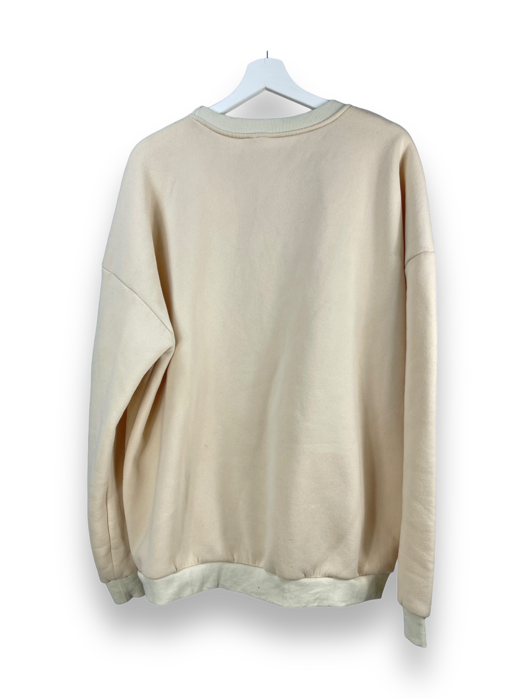 Hier haben wir ein Sweatshirt in uni creme mit einem lässigen Druck vorne auf der Brust.