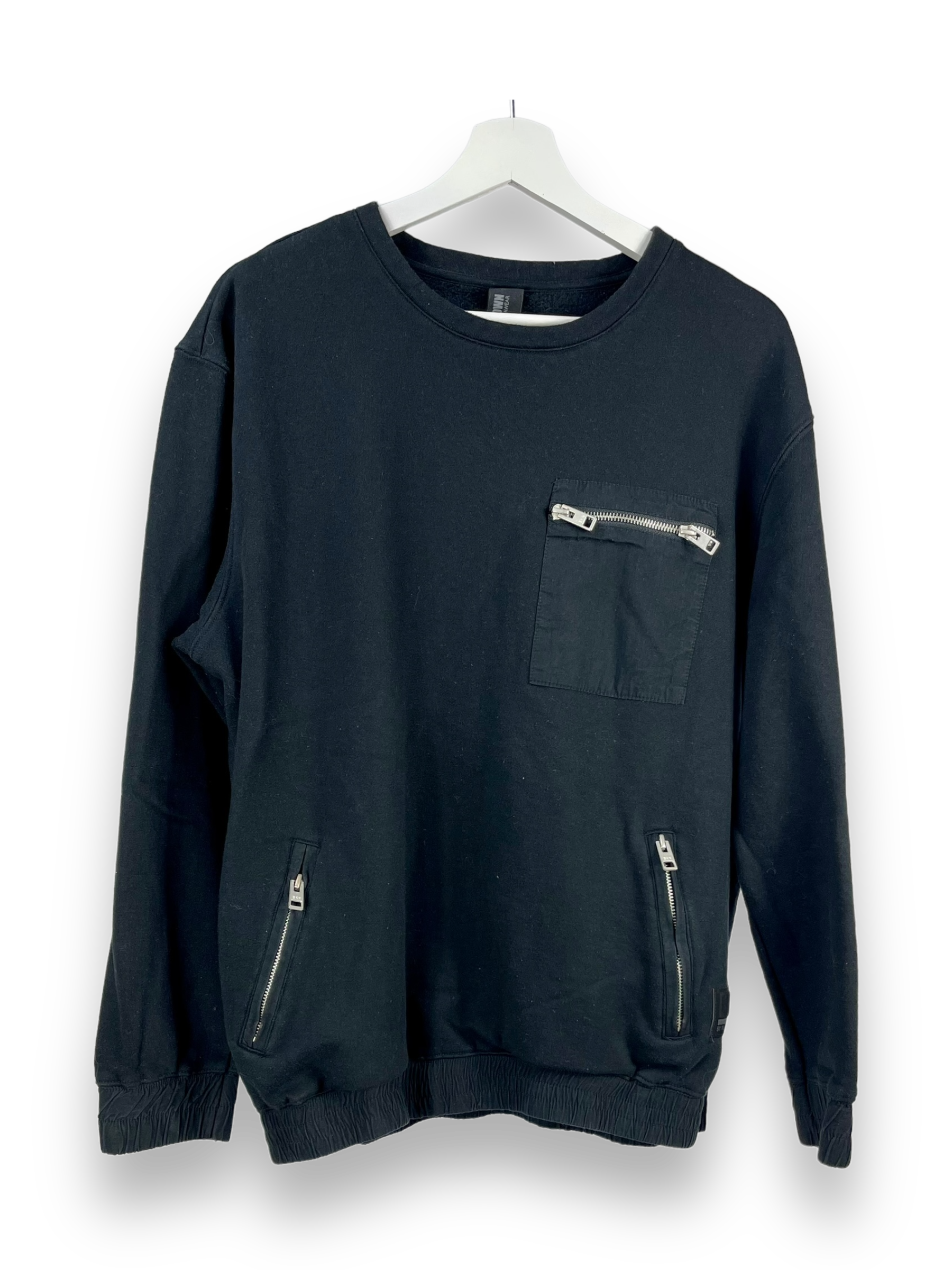 Das Sweatshirt von Brooklyn‘s Own ist uni schwarz. Vorne hat der Hoodie drei Taschen, welche sich mit Reissverschlüssen schliessen lassen.
