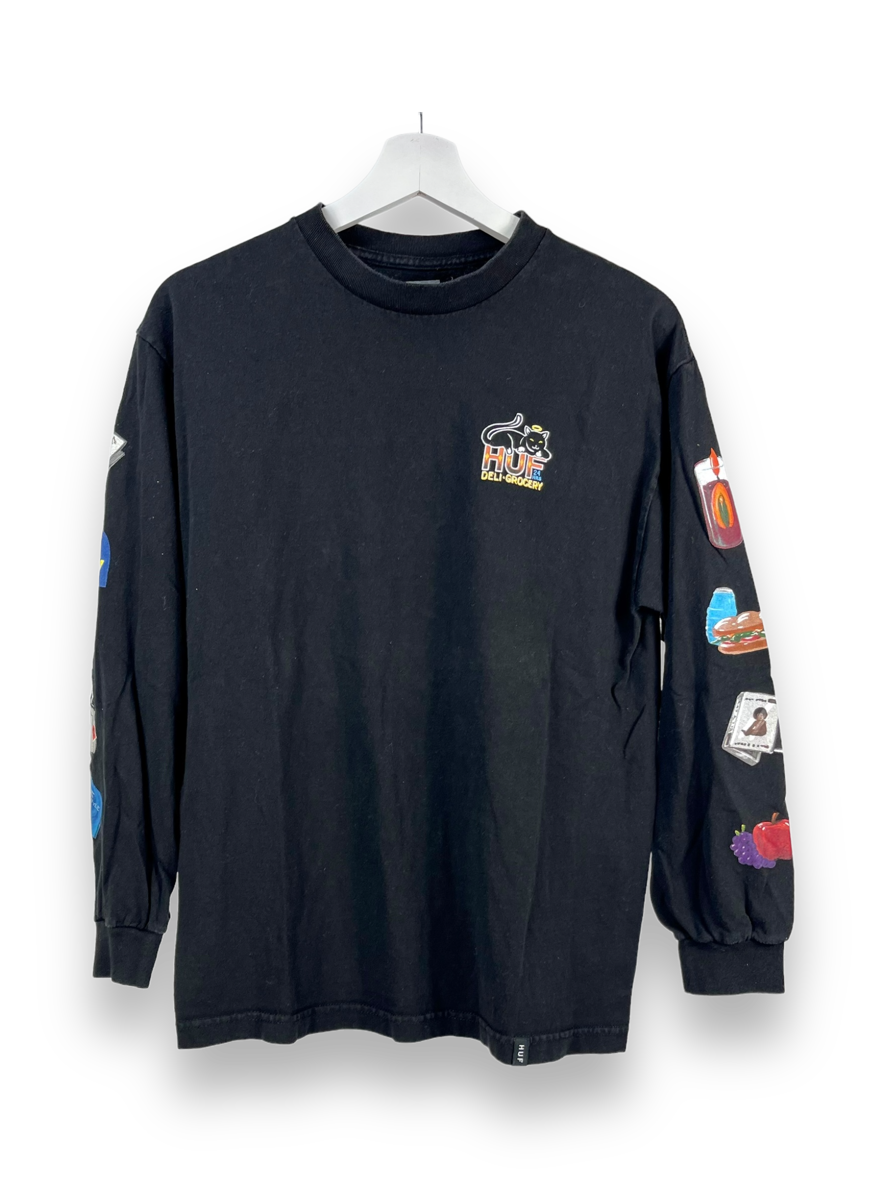 HUF – gemacht von Skateboardern, für Skateboarder. Die Marke produziert coole Streetwear in klassischer amerikanischer Handwerkskunst und einem zeitlosen Vintage-Design mit funktionalen, modernen Details. Hier haben wir ein Sweatshirt in schwarz mit einem feinen Druck vorne auf der Brust und weiteren tollen Drucks an den Ärmeln.