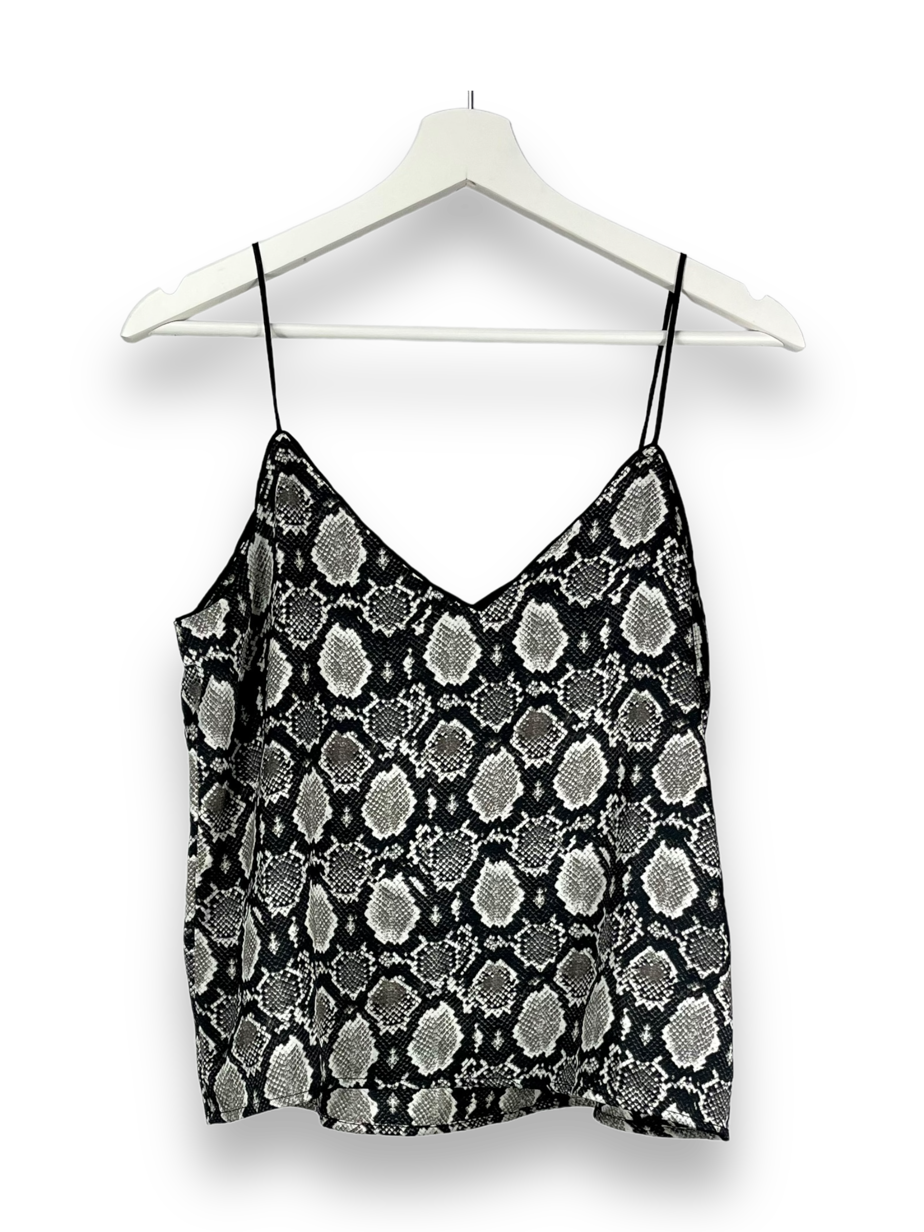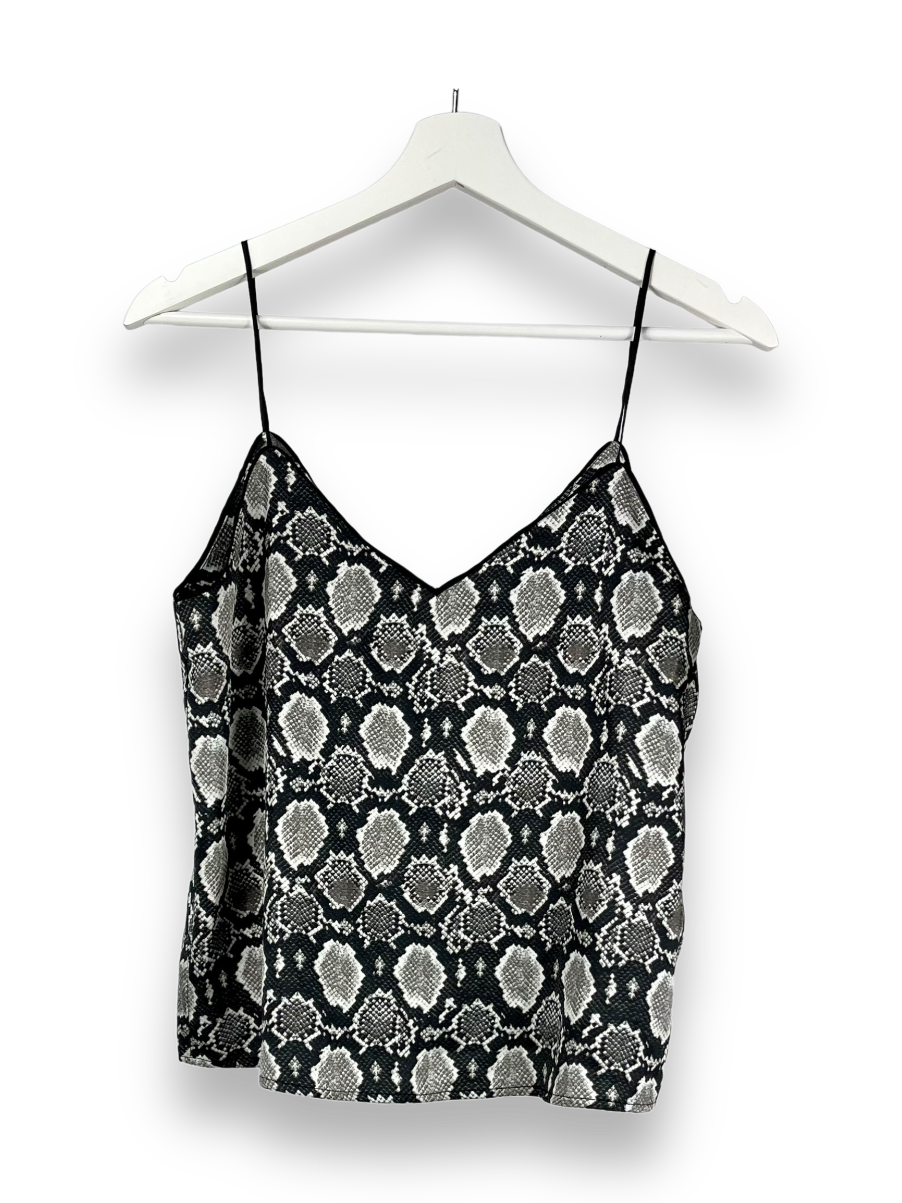Dieses Top hat ein wunderschönes Schlangenprint in grau, weiss und schwarz. Es hat feine Spaghettiträger und befindet sich in einem sehr guten Zustand.