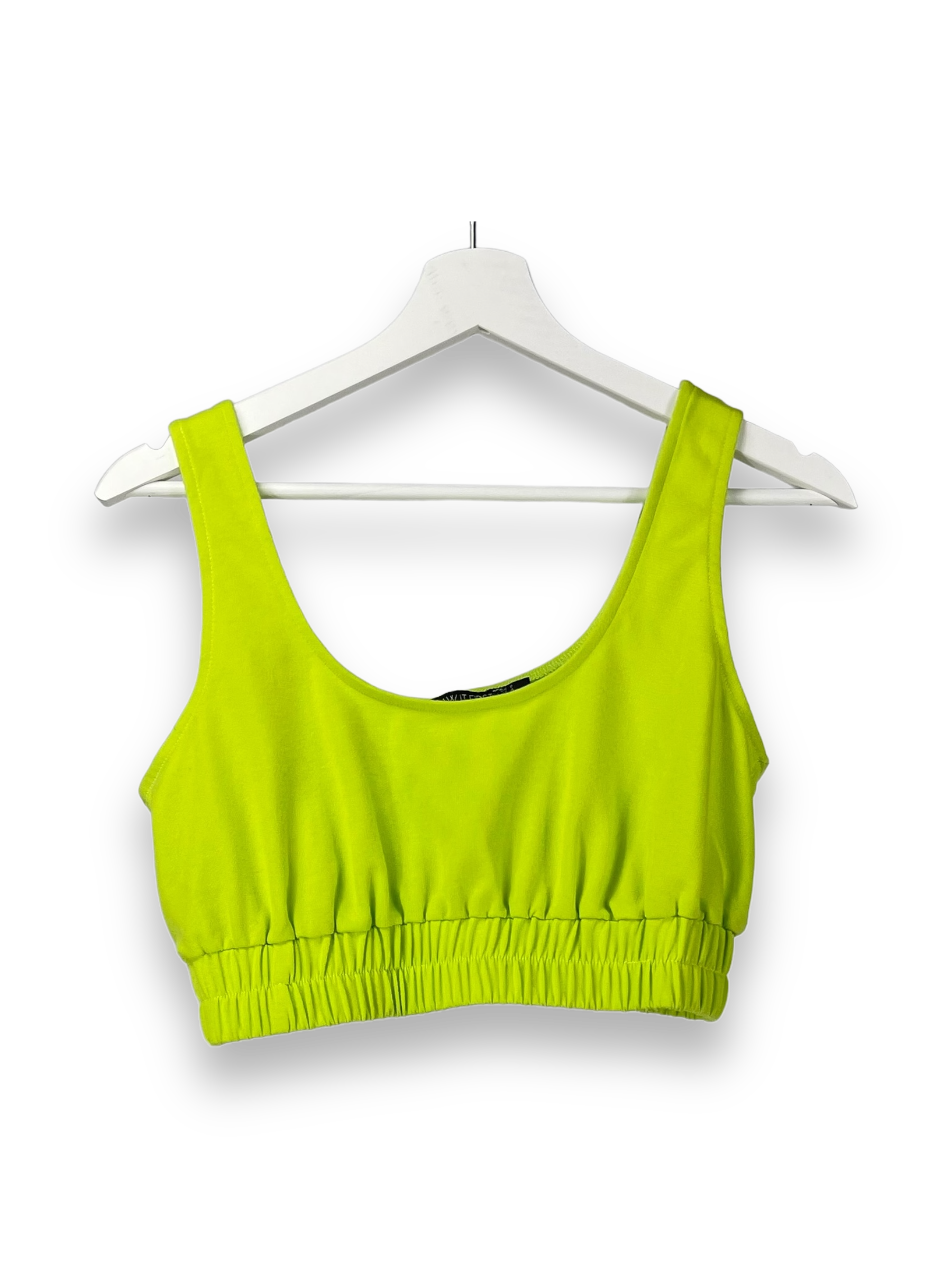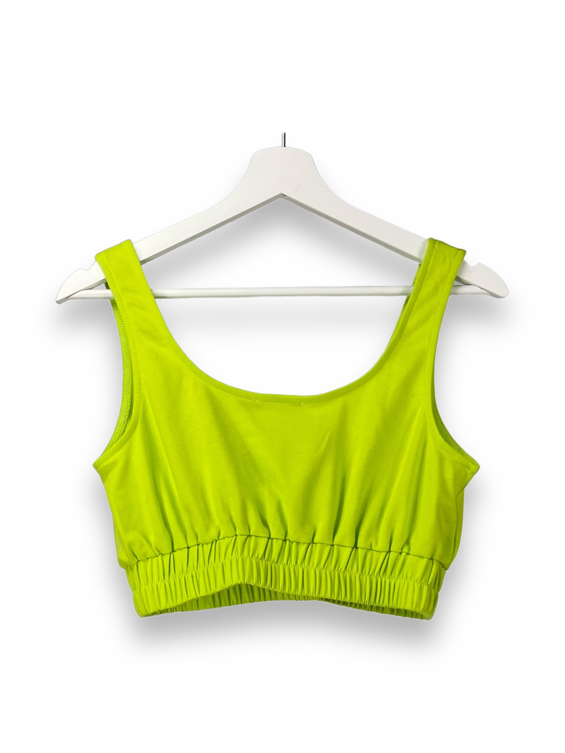 Wie wäre es mal mit etwas leuchtendem? Dieses Top ist knallig grün, kurz geschnitten mit einem Gummizug unten und breiten Spaghettiträgern.
